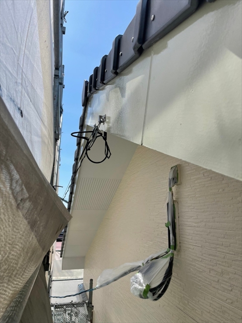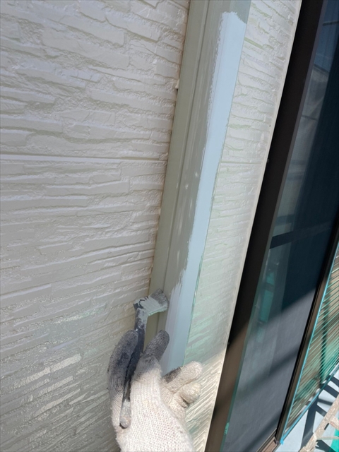 本日は壁の上塗り、付帯部塗装を行いました。