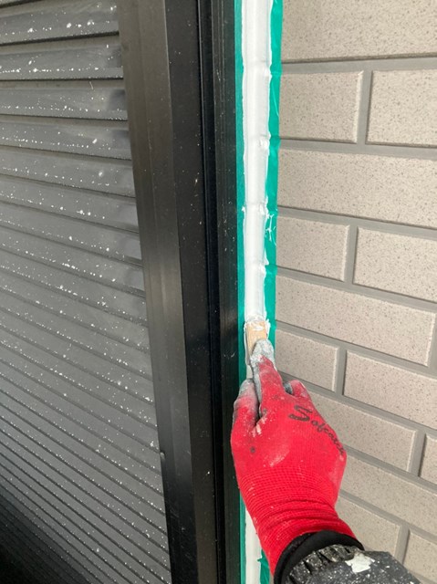 密着性を高めてからコーキングの打ち替え作業を行いました。