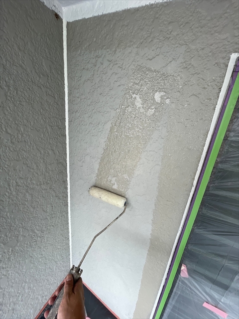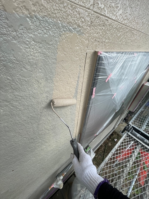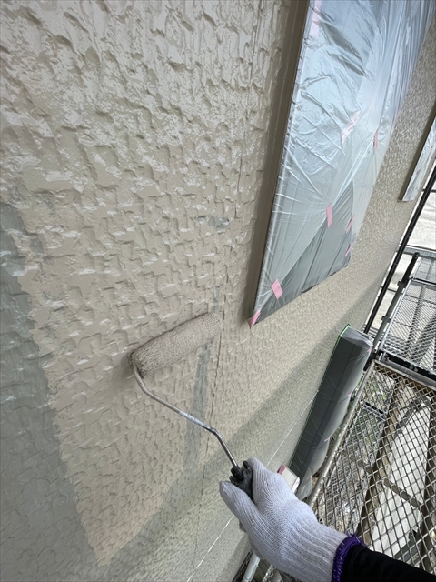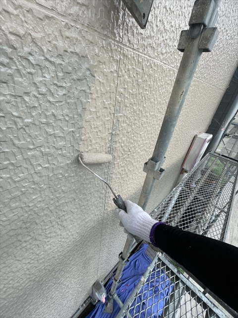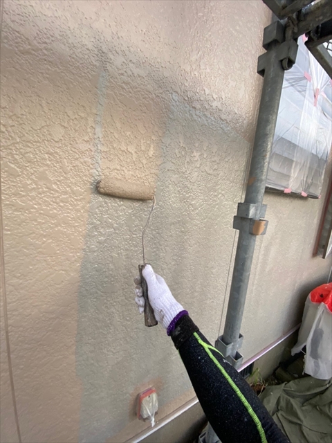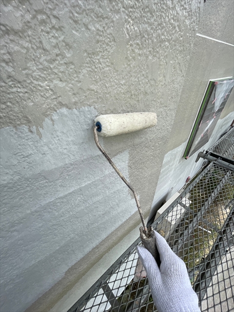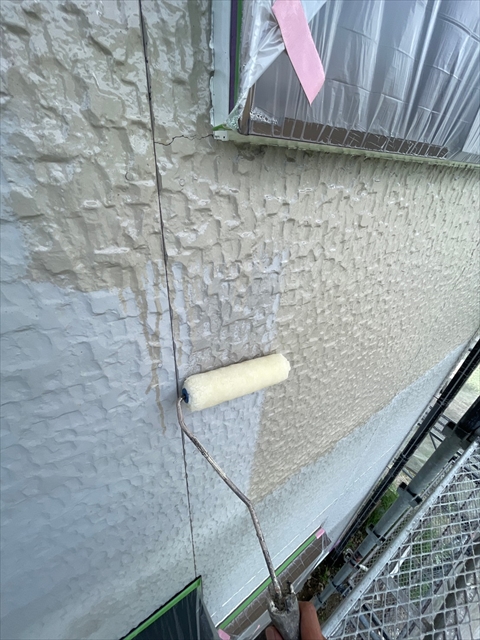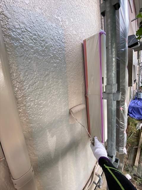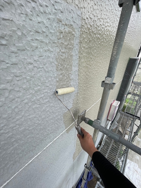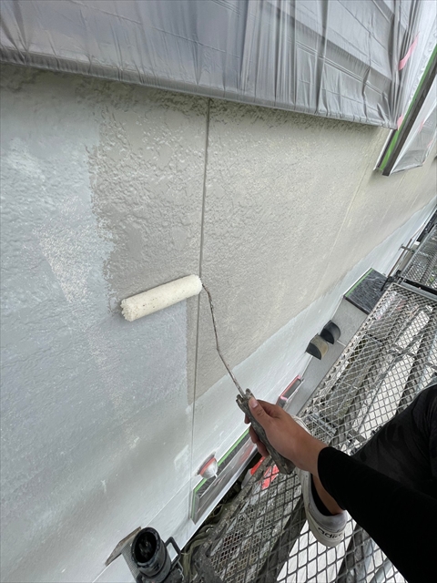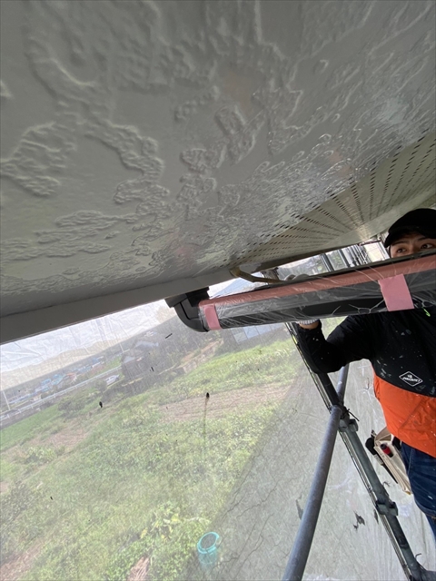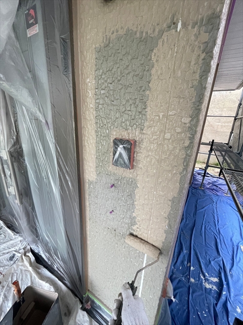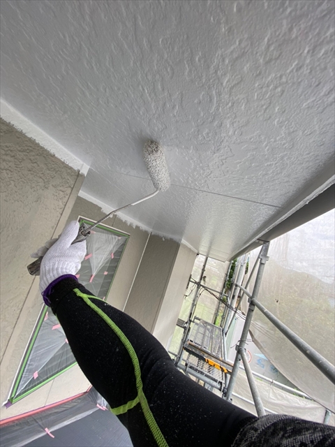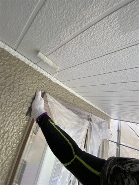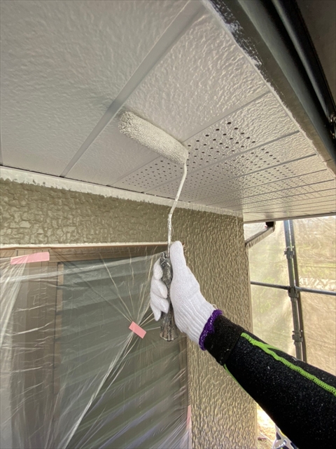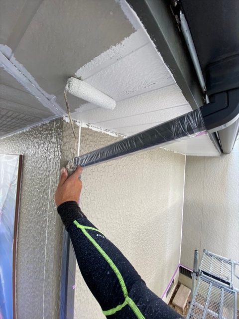本日は北面・東面軒天塗り、外壁下塗り、中塗り作業を行いました。