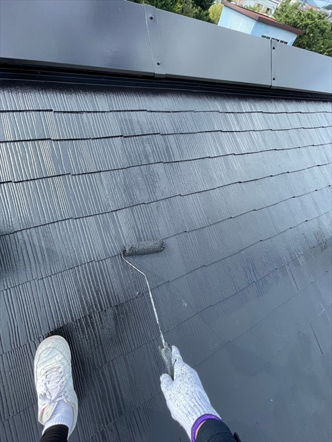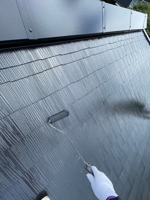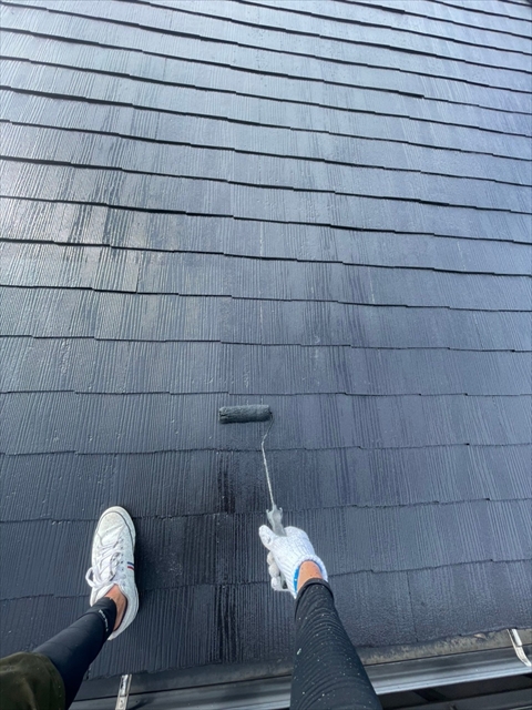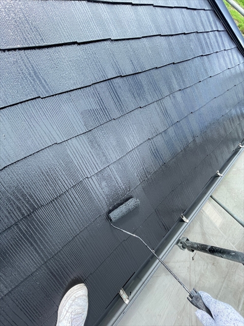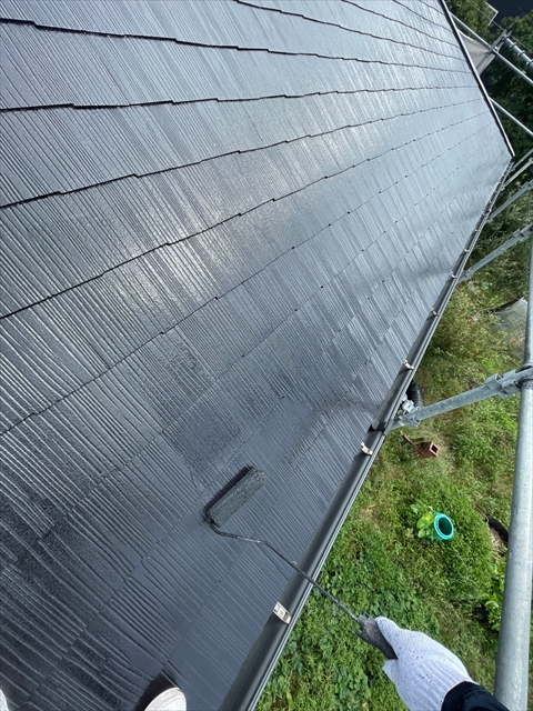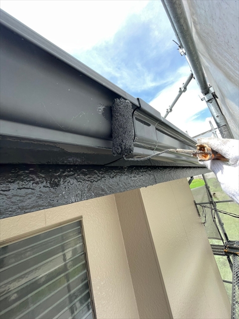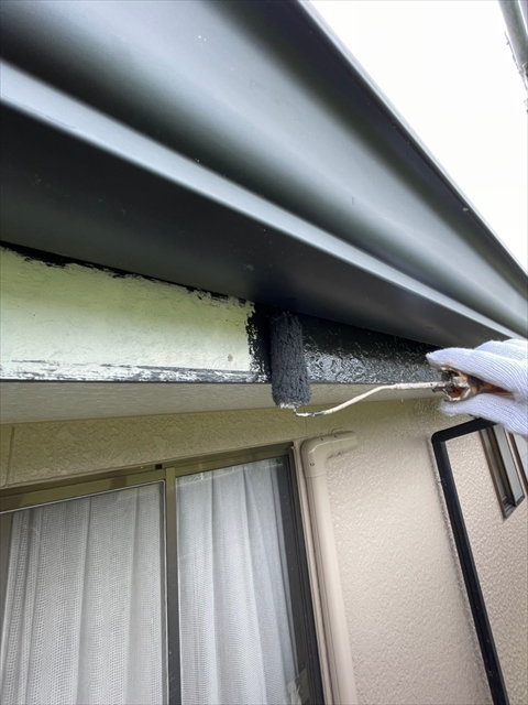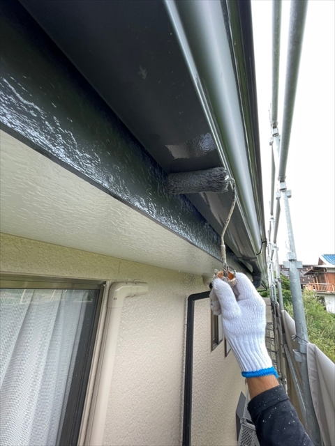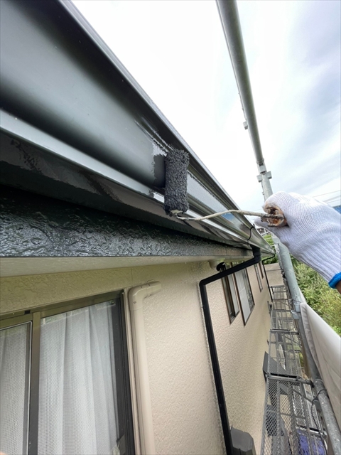 鳥栖市 M様邸 大屋根の上塗り 北面・東面破風・横樋塗り
