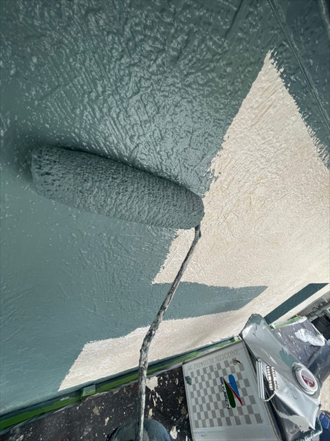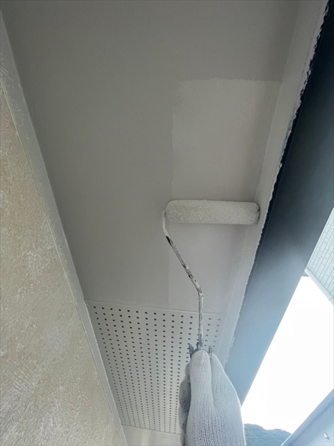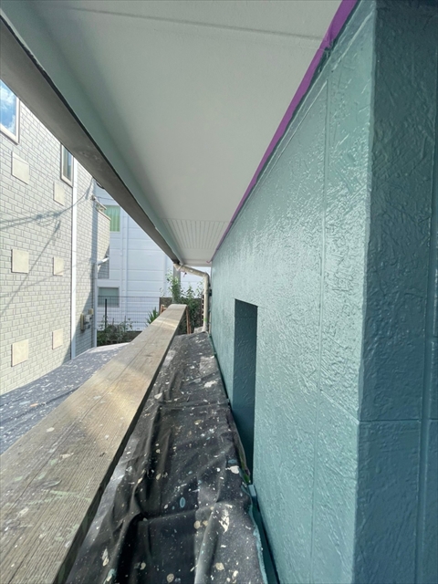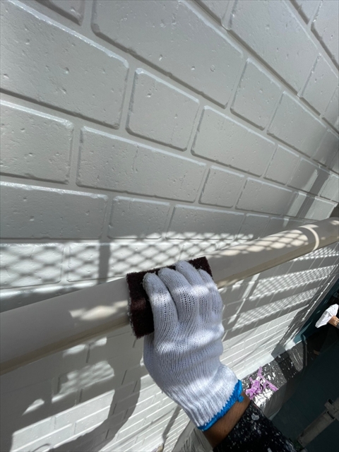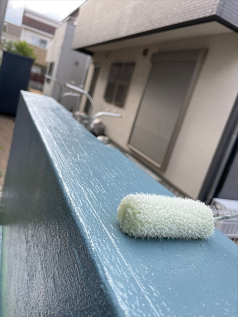 明日の作業は破風・樋塗装、北面・下屋根上塗り塗装、バルコニー防水、タッチアップ、掃除等を行い、15時頃から検査を実施し終わり次第光触媒の吹き付け作業を行わせて頂く予定です。