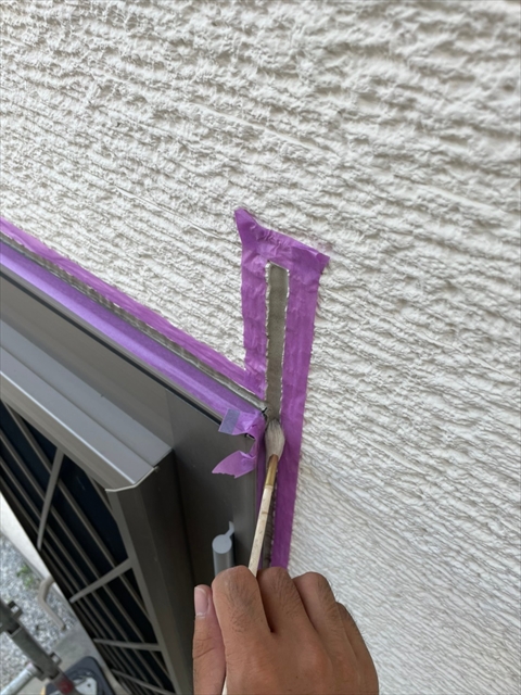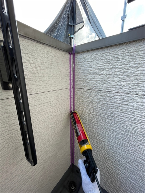 本日はコーキングの打替・打増、屋根の下塗りを行いました。