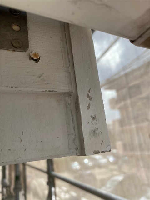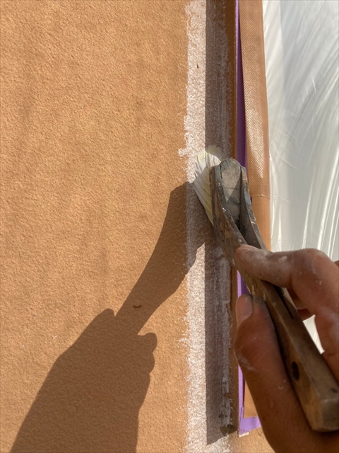 明日は2階バルコニー内、1階の下地補修、軒天の塗装を行う予定です。