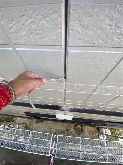 明日は引き続き2階コーキング打替、1階コーキング撤去・打替、バルコニーのボード解体を行う予定です。
