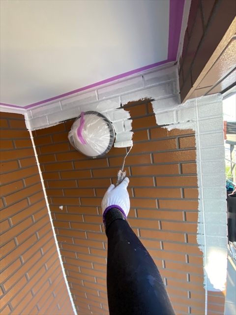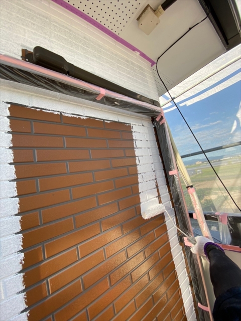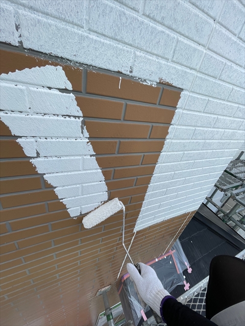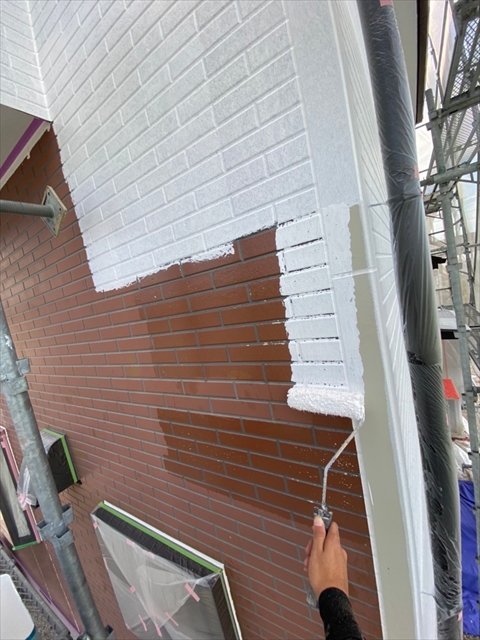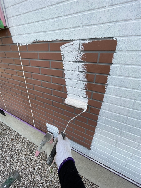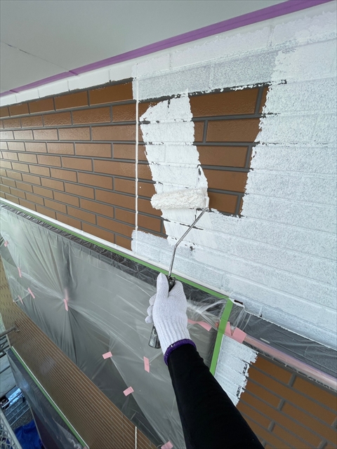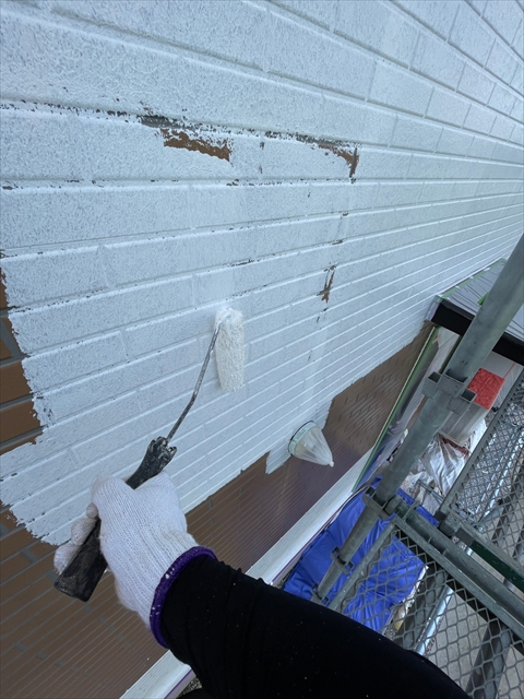 本日は外壁下地調整、下塗り、サイディング張替部のコーキング打ちを行いました。