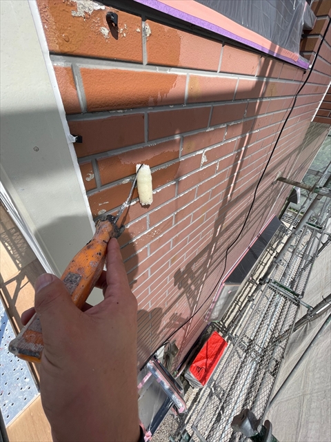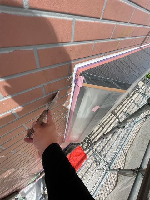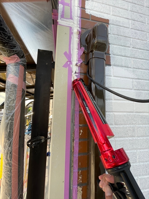 久留米市 N様邸 外壁下地調整 下塗り サイディング張替部のコーキング打ち