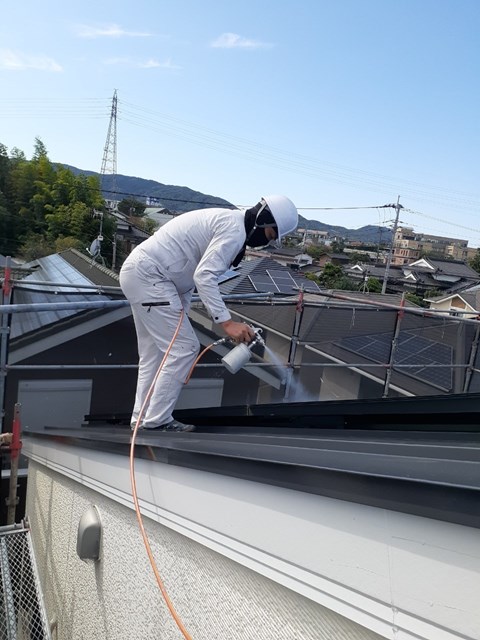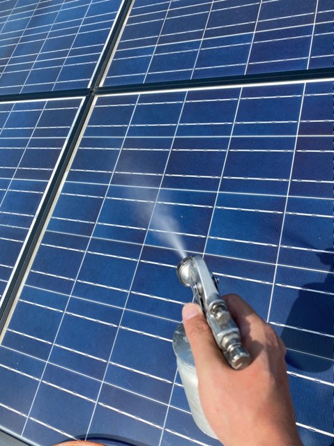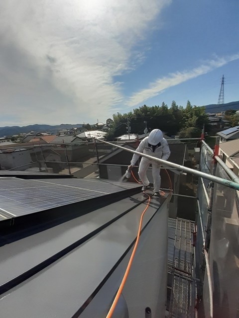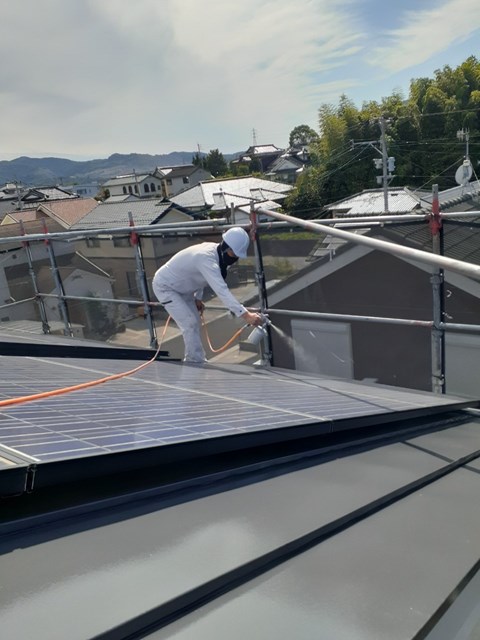 ソーラーパネルはソーラー専用光触媒FS-SUNを使用し、屋根及び外壁は専用光触媒セルフガードにてコーティングをしました。