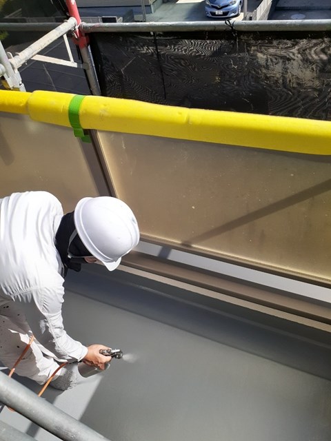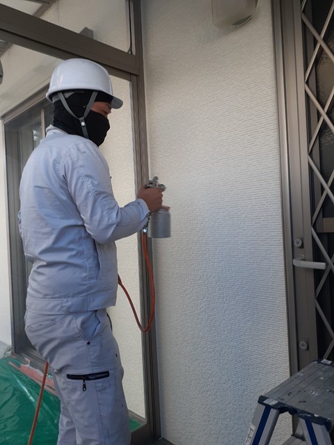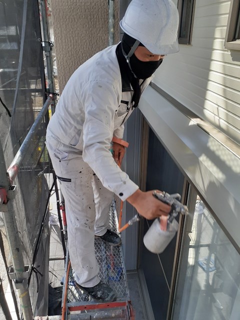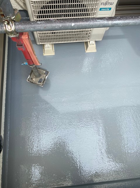 本日はベランダ防水を行い、昨日に引き続き各所タッチアップ・清掃を行いました。