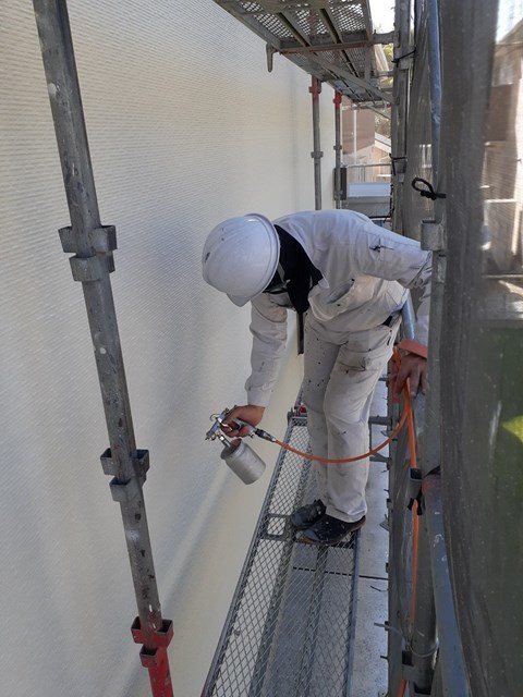 22日(火曜日)に足場解体を行い、解体後に最終確認・清掃、水切り塗装を行う予定です。