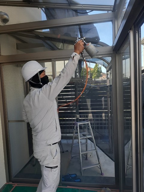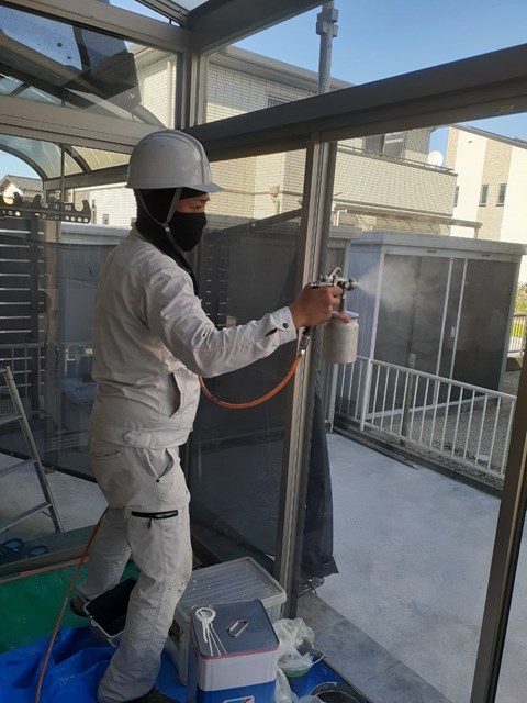 午後から光触媒コーティングを行い、光触媒コーティングは完了しました。。