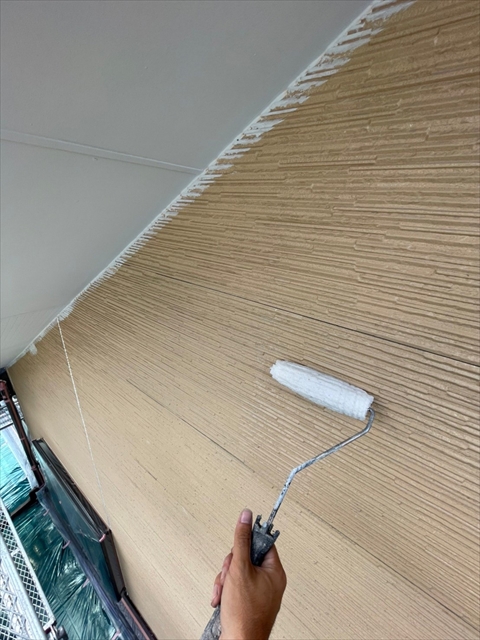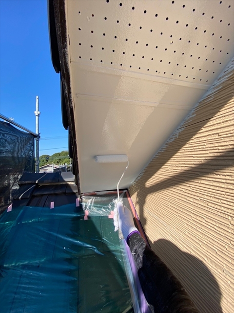 [八幡西区 T様邸] 軒天塗り 外壁下塗り 2021 10/05 2021年10月5日 本日は軒天塗り、外壁下塗り作業を行いました。 明日は壁の中塗り作業を行う予定です。 施工現場ブログ よかったらシェアしてね! URLをコピーしました! URLをコピーしました!