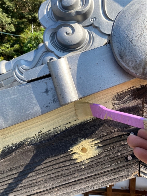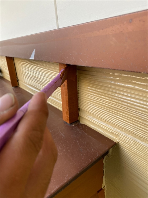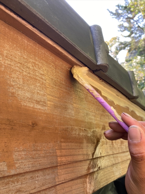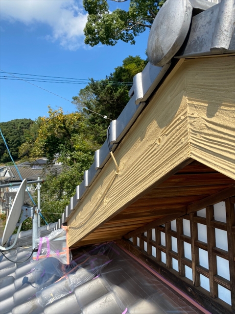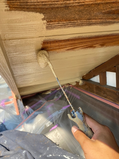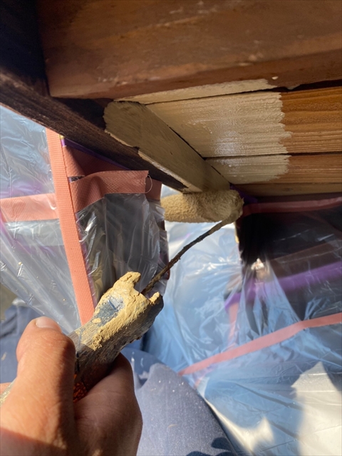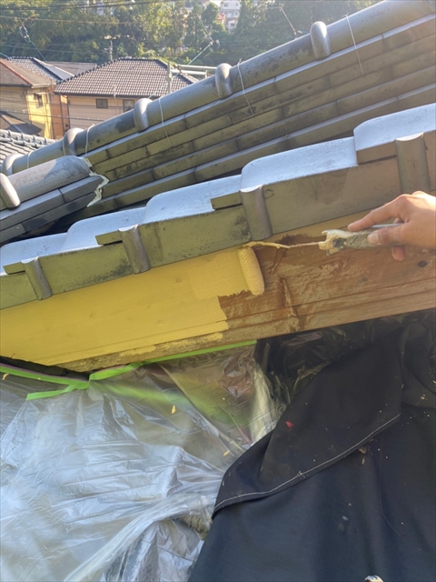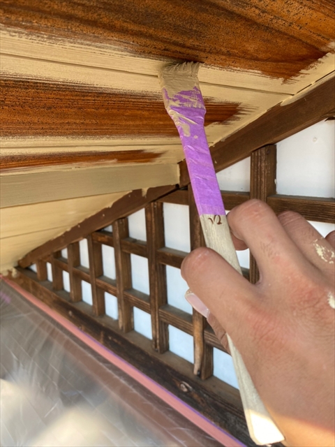 [佐世保市 Y様邸] 大屋根木部部分養生 木部・破風・軒天塗装 縦木部タッチアップ 2021 10/08 2021年10月7日2021年10月8日 本日は大屋根木部部分養生、木部・破風・軒天塗装、縦木部タッチアップを行いました。 明日は縦樋・横樋・板金塗物、大屋根・白壁下塗り・中塗りを行う予定です。 施工現場ブログ よかったらシェアしてね! URLをコピーしました! URLをコピーしました!