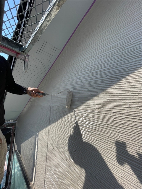 [八幡西区 T様邸] 2F上塗り 帯撤去部下塗り 1F中塗り 1F道路面・北面の上塗り 2021 10/08 2021年10月7日2021年10月8日 本日は2F上塗り、帯撤去部下塗り、1F中塗り、1F道路面・北面の上塗り作業を行いました。 明日はバルコニー内の横樋・破風・縦樋塗り、バルコニー内養生剥を行う予定です。 施工現場ブログ よかったらシェアしてね! URLをコピーしました! URLをコピーしました!