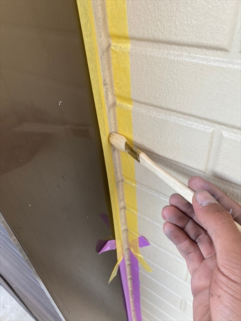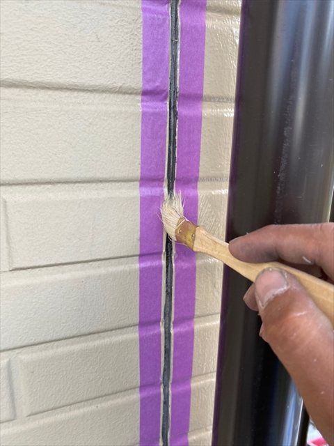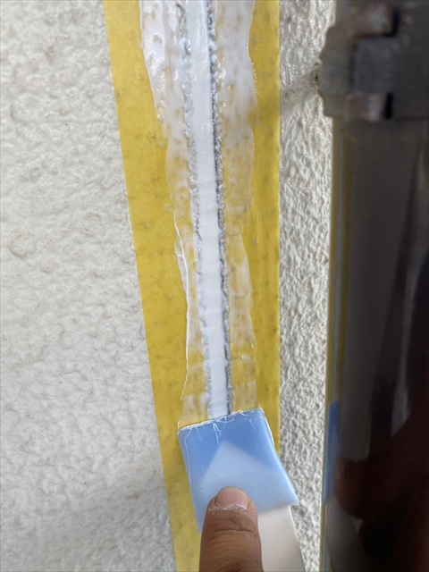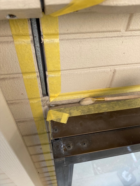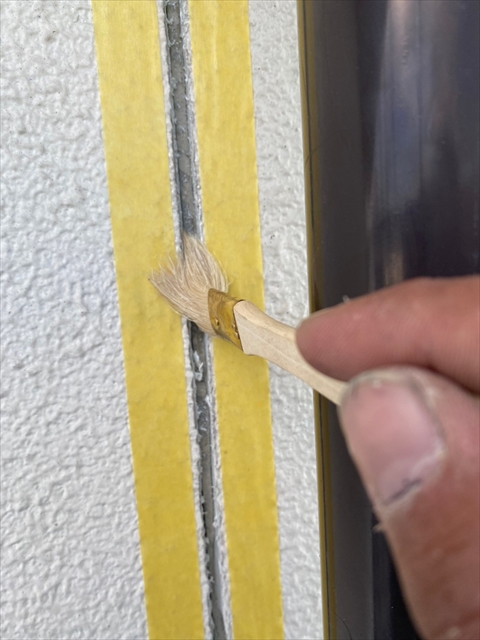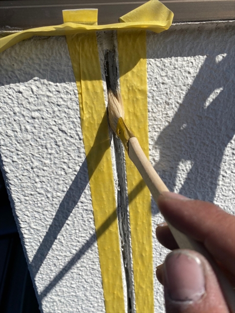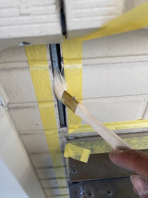 本日はコーキング剥取、養生、プライマー、2階・1階北面コーキング作業を行いました。