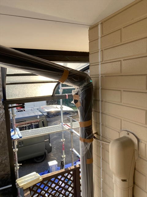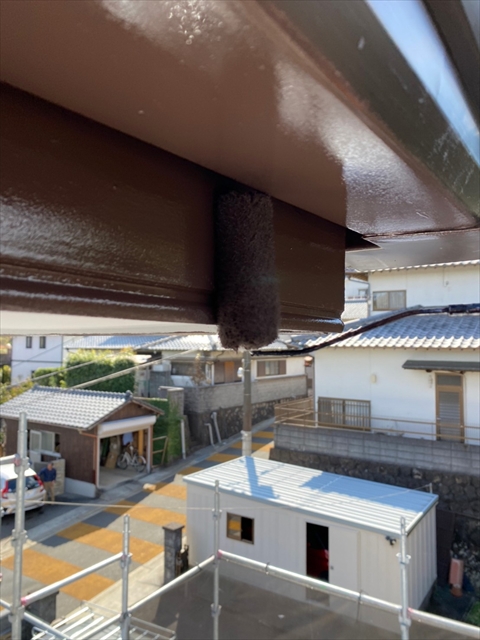 [久留米市 H様邸] 軒天塗装 壁中塗り 横樋 一階養生 2021 10/27 2021年10月26日2021年10月27日 本日は軒天塗装、壁中塗り、横樋、一階養生を行いました。 明日は2階壁中塗り・上塗り、一階壁下塗りを行う予定です。 施工現場ブログ よかったらシェアしてね! URLをコピーしました! URLをコピーしました!