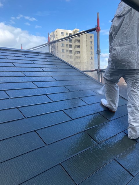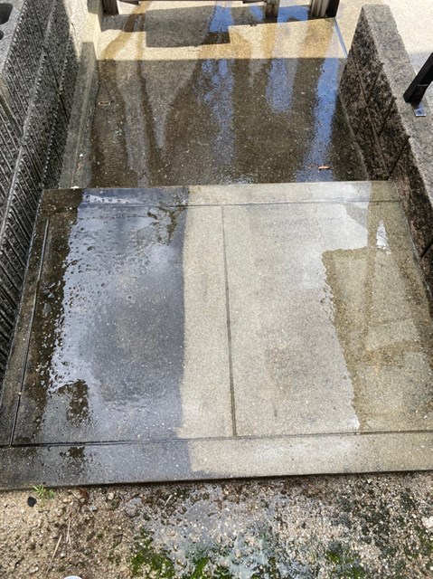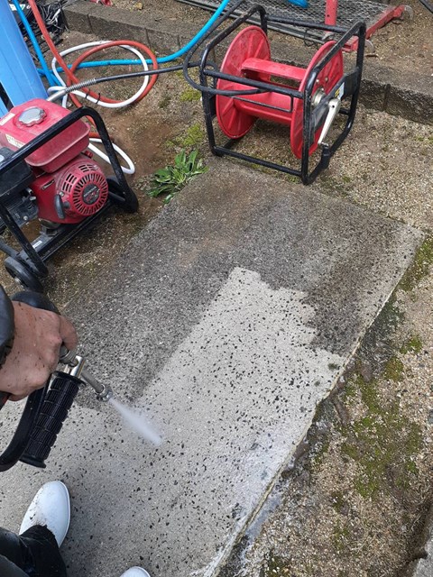 屋根、外壁、土間など高圧洗浄ができる範囲でしっかりと洗浄しました。