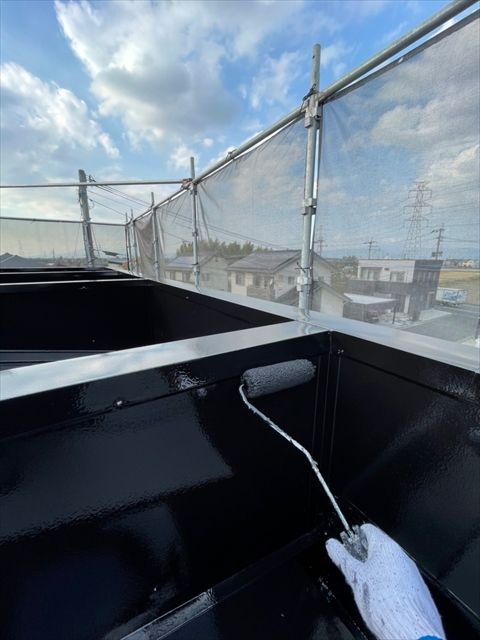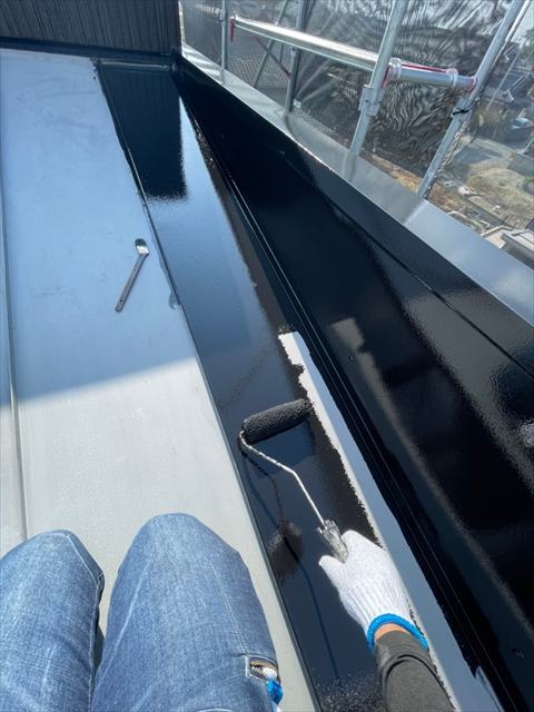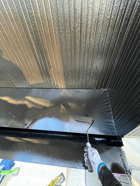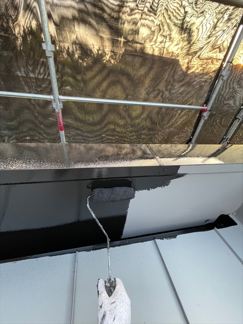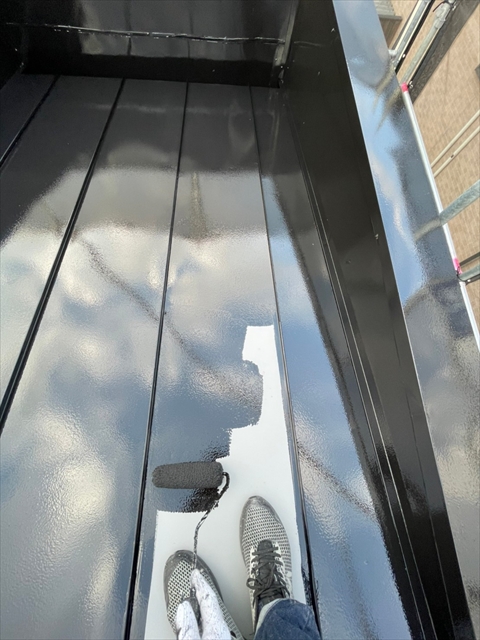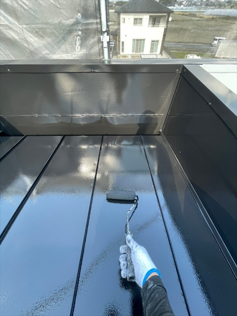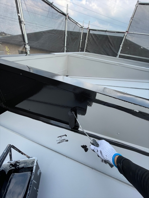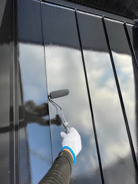 本日は上屋根の中塗り・上塗りを行いました。