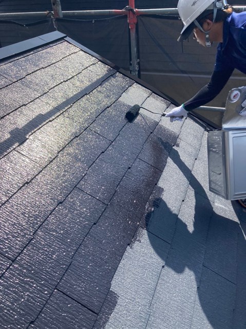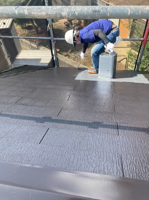 下屋根の上塗り