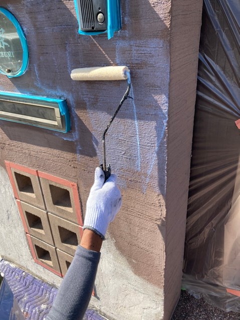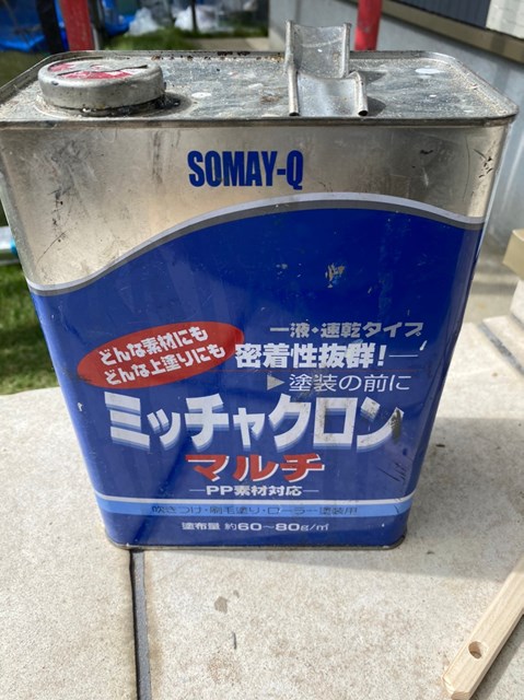 ミッチャクロンと言う接着剤の役割りを果たす下塗り材を塗りました。