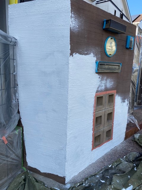 一部、腰壁の中塗り