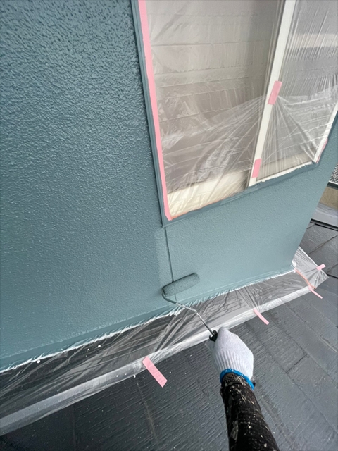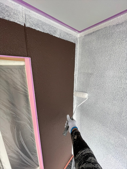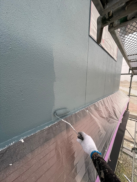 本日は2F外壁下塗り・中塗り・上塗りを行いました。