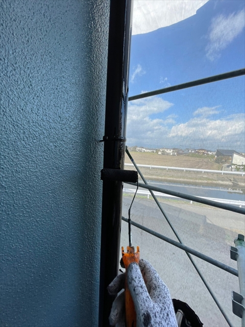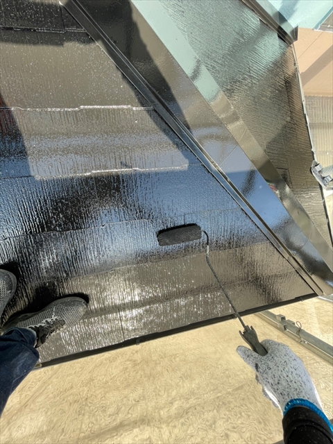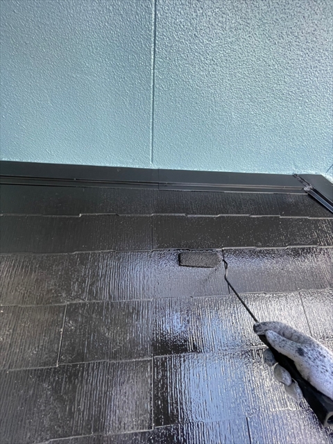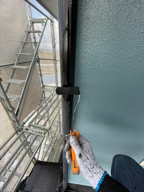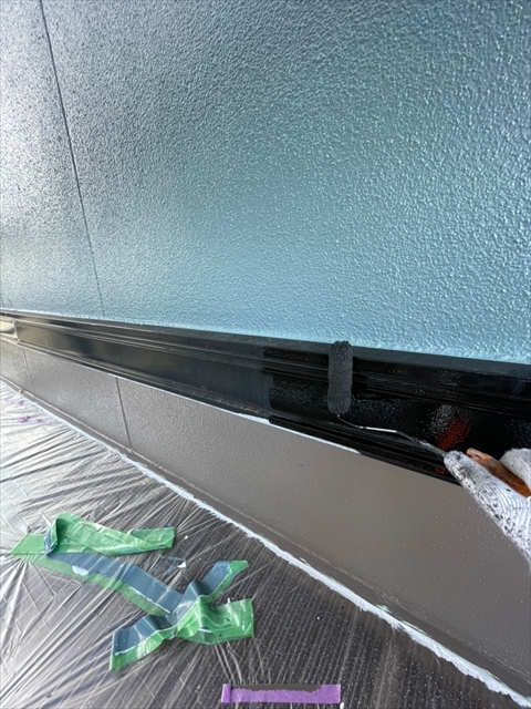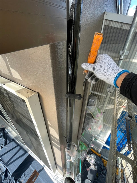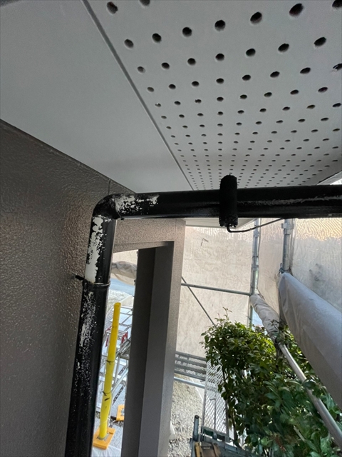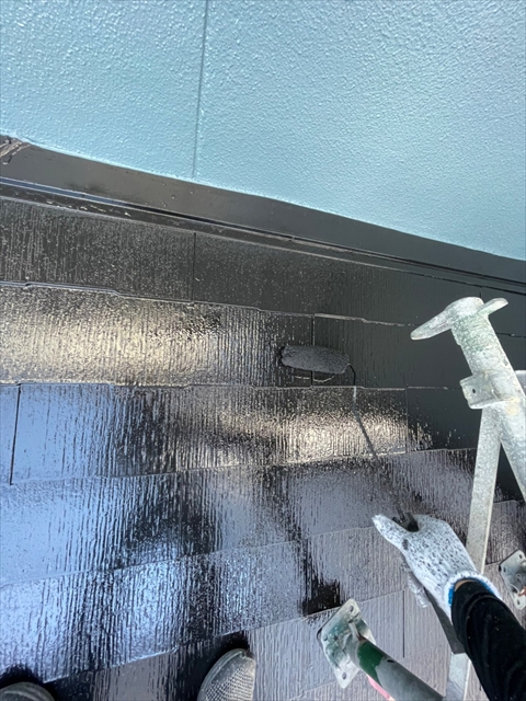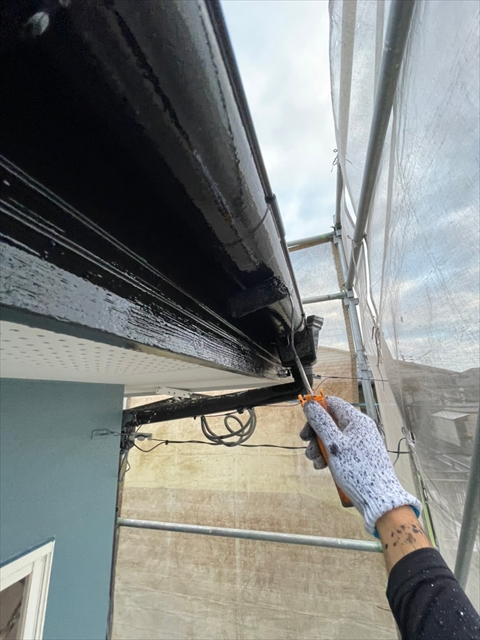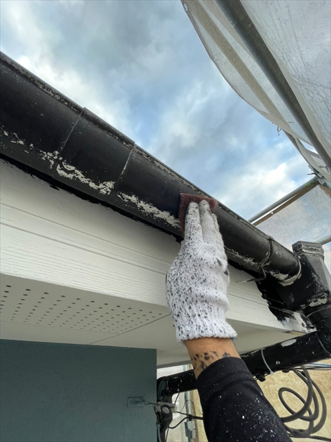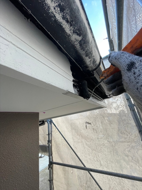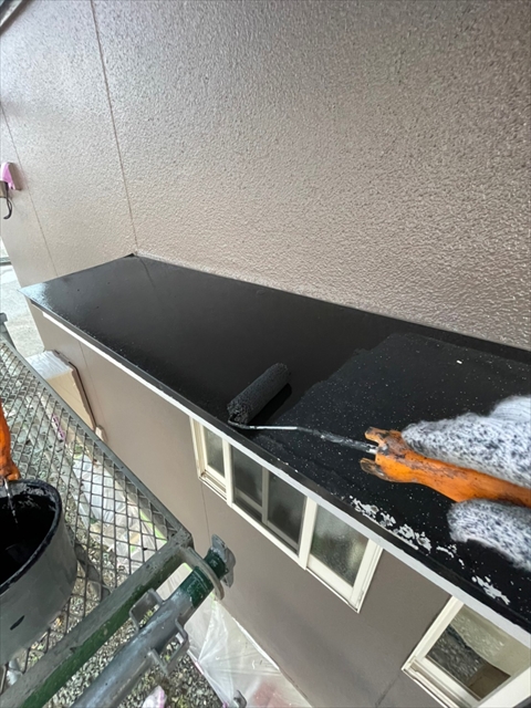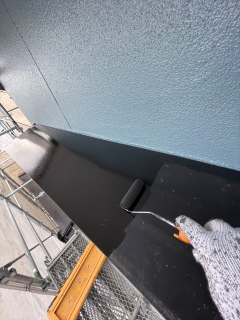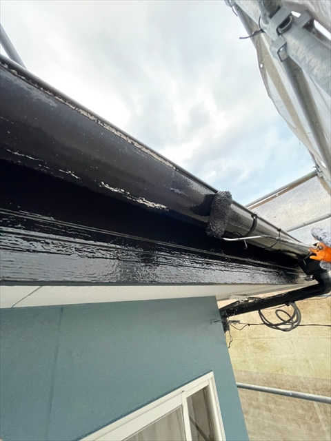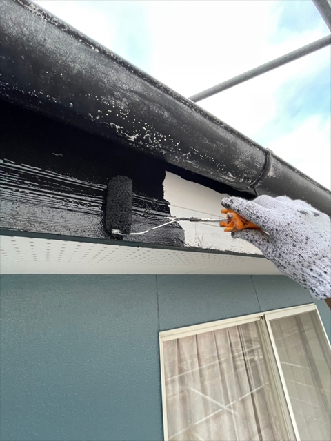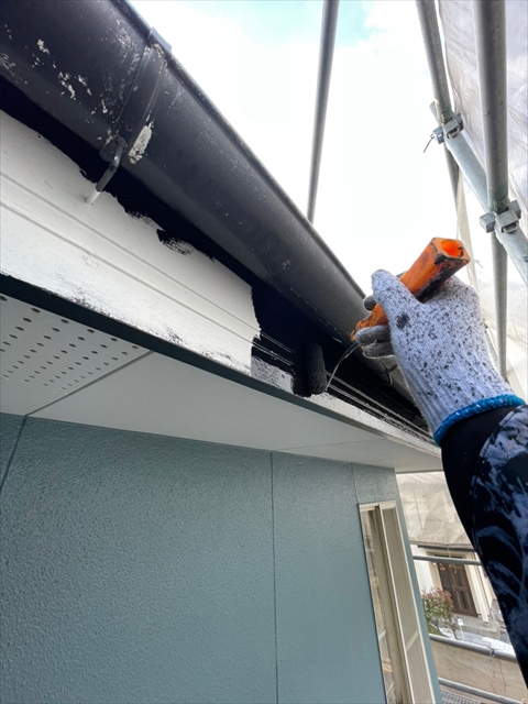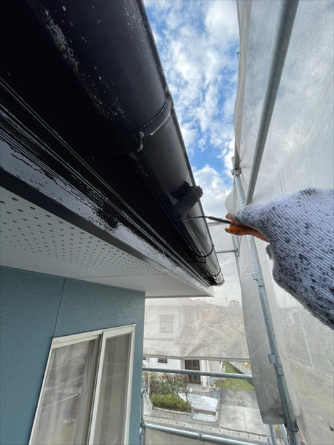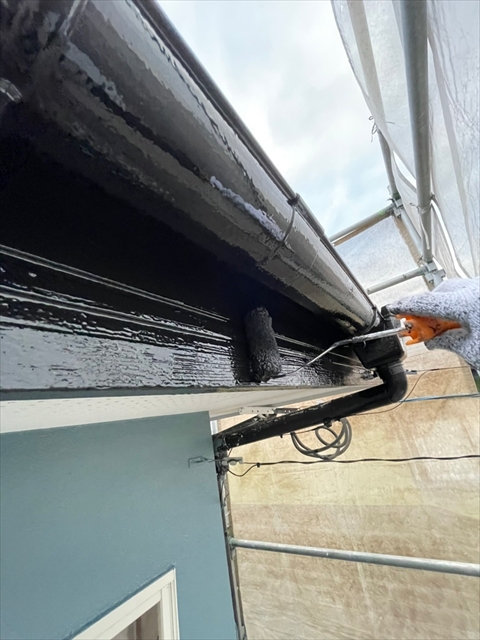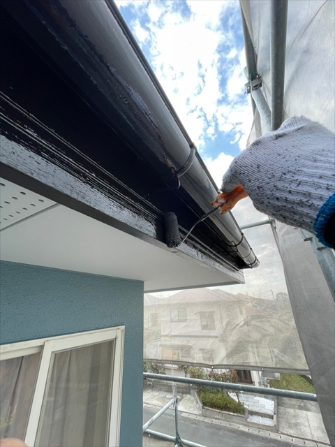 [久留米市 U様邸] 下屋根の上塗り 鼻隠し・雨樋・小庇・帯の塗装