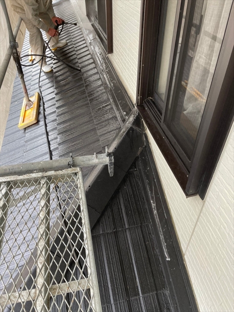 明日はシーリング、屋根のケレン・下塗りを行う予定です。