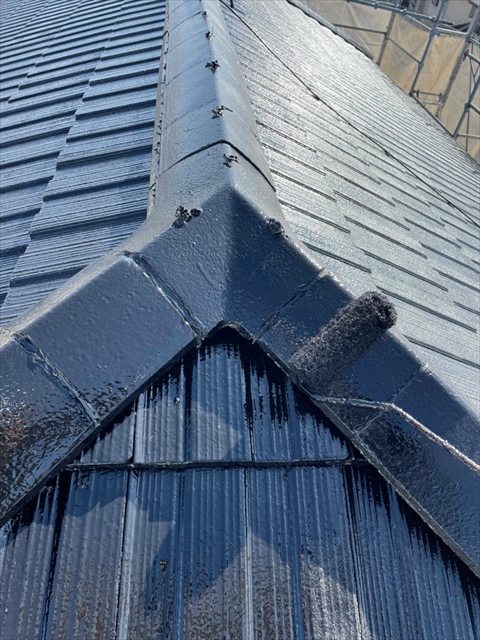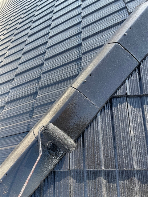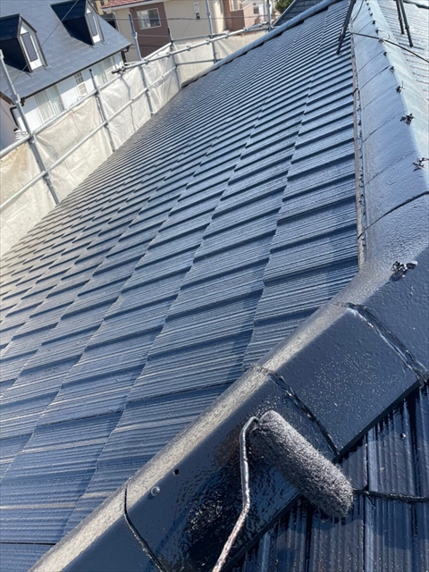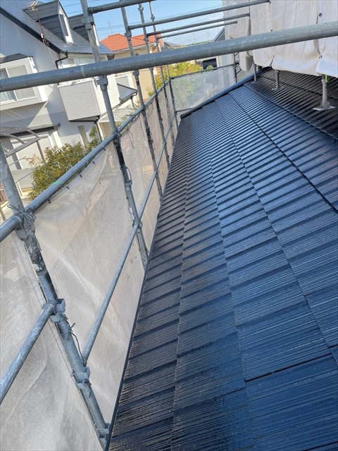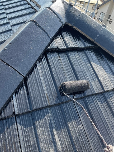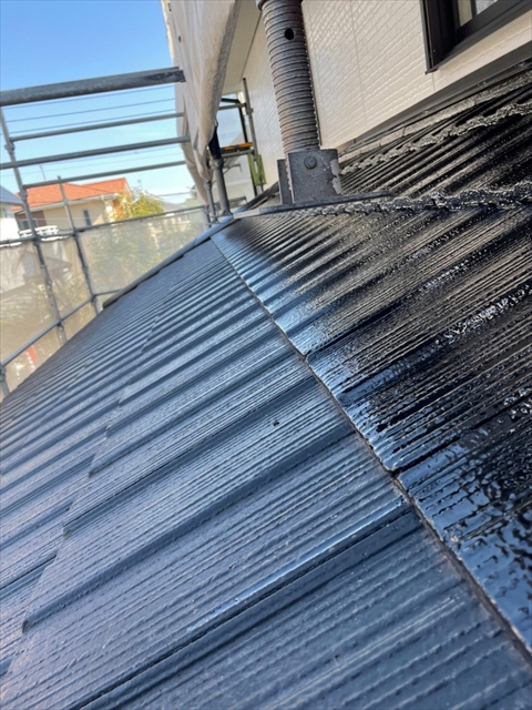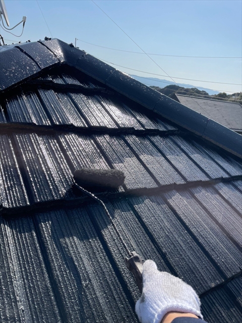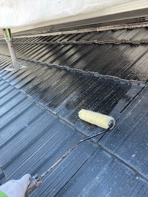 [小郡市 S様邸] 中塗り・上塗り 屋根の中塗り・上塗り 下屋根の下塗り