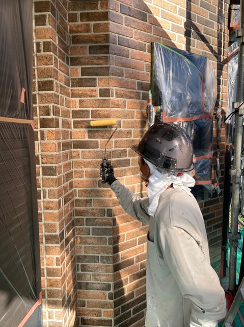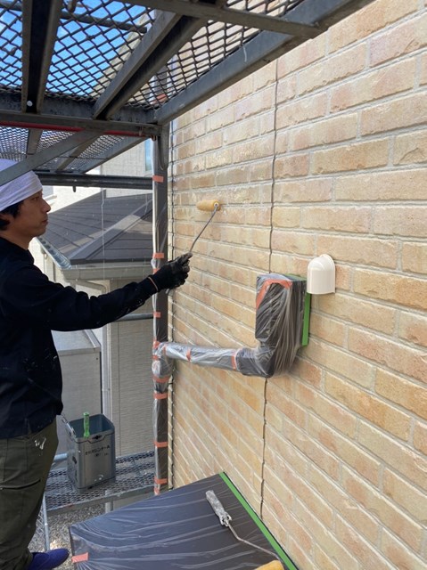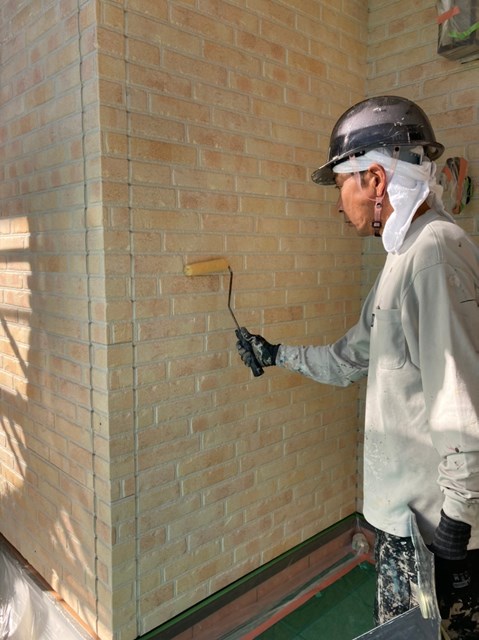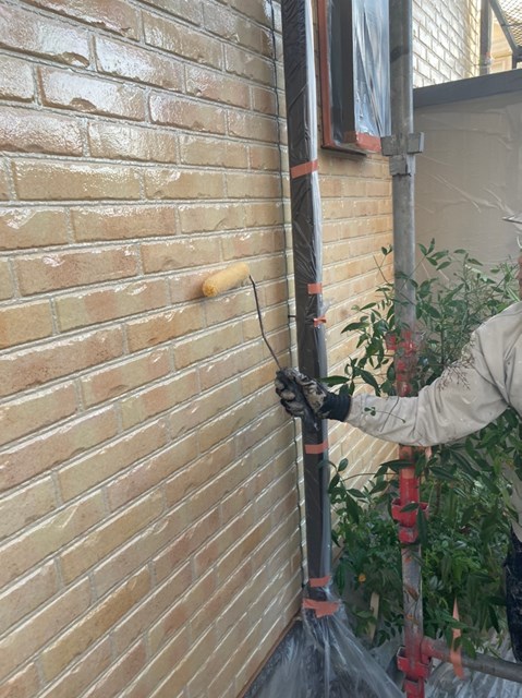 引き続き外壁のクリヤー塗装