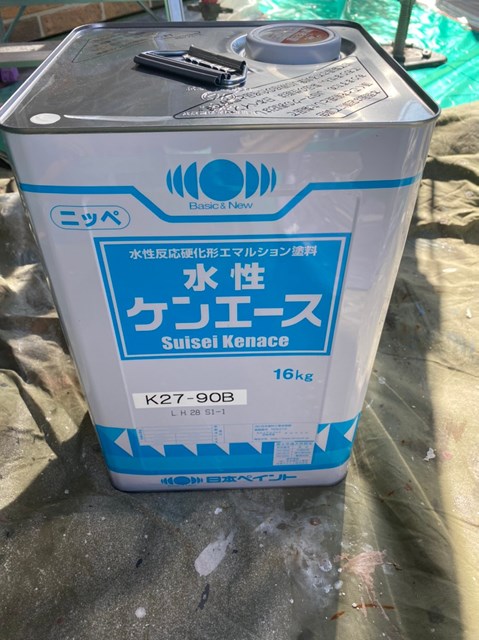 軒天井に使用した水性ケンエースは、防カビ・防藻成分を配合した軒天専用塗料です。