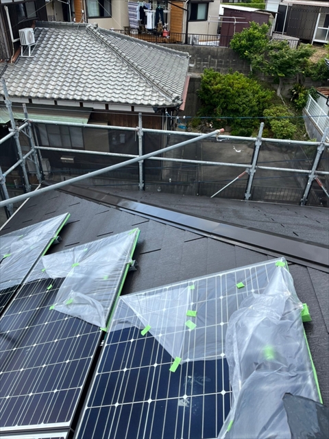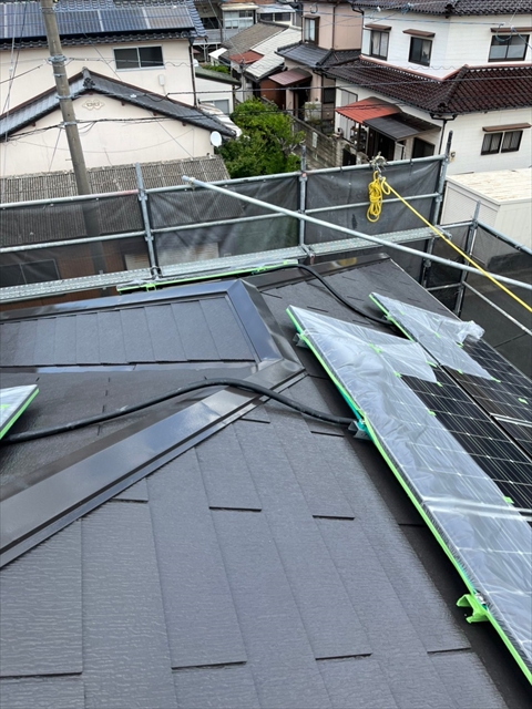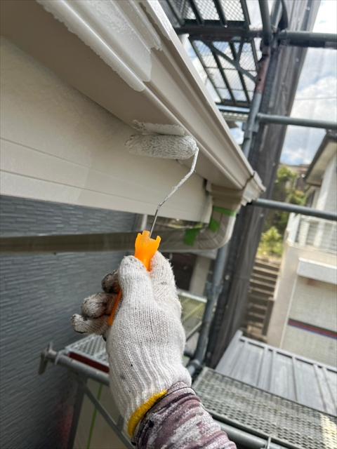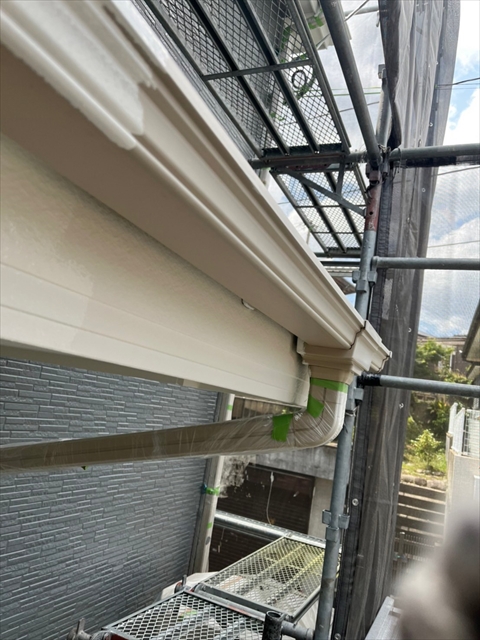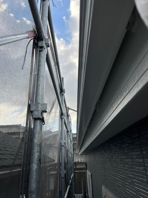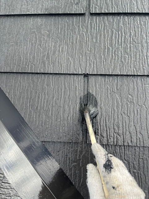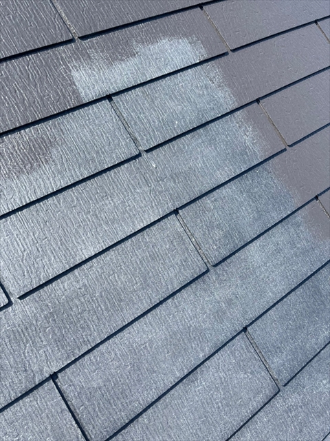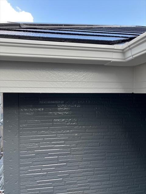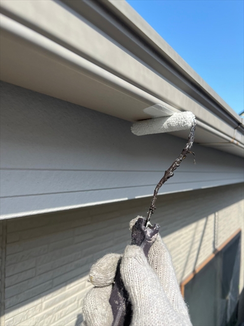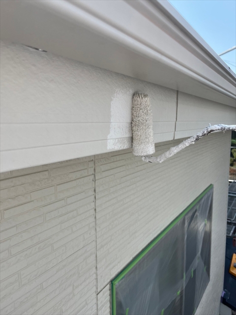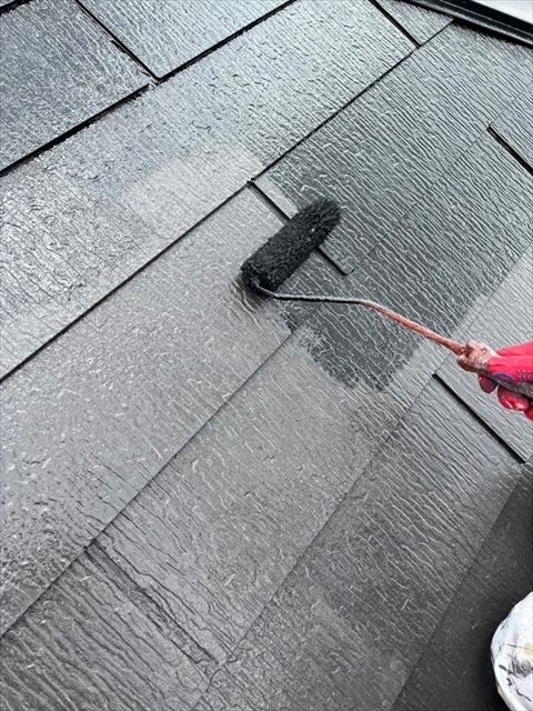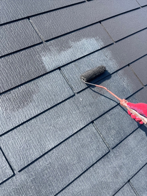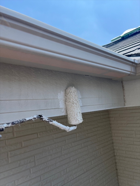 本日は屋根の中塗り、付帯部塗装を行いました。