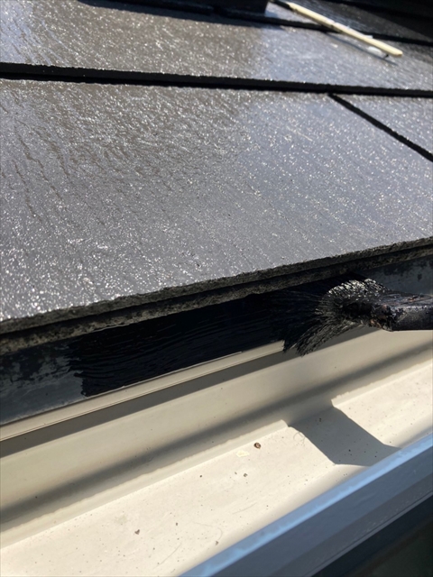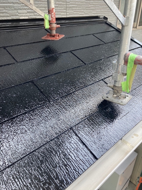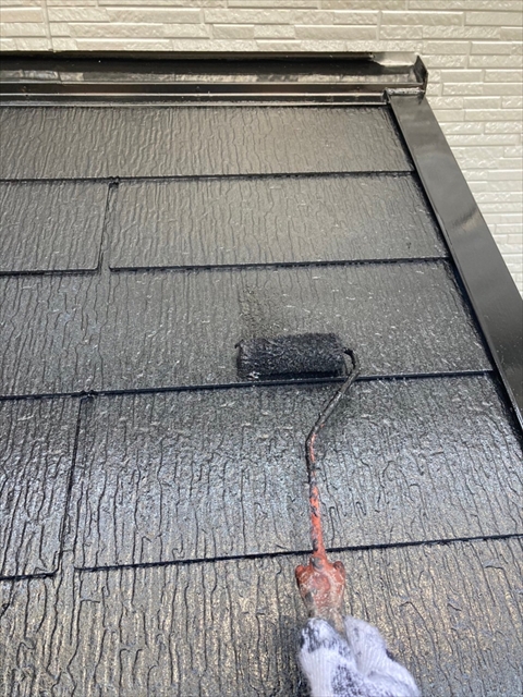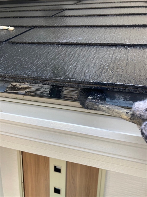 本日は屋根の上塗り、付帯部塗装を行いました。