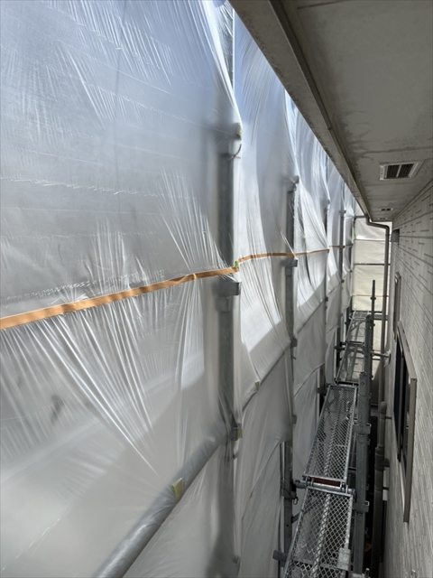 本日は養生、高圧洗浄を行いました。