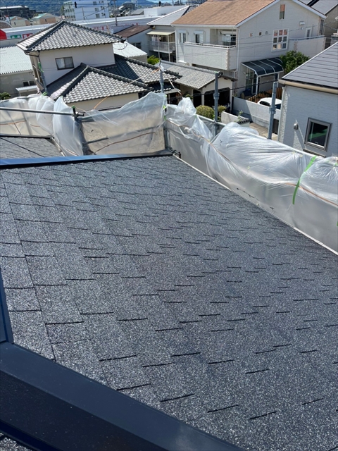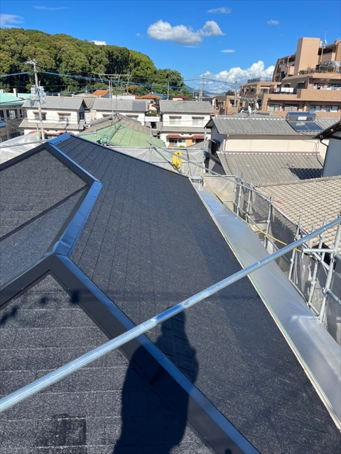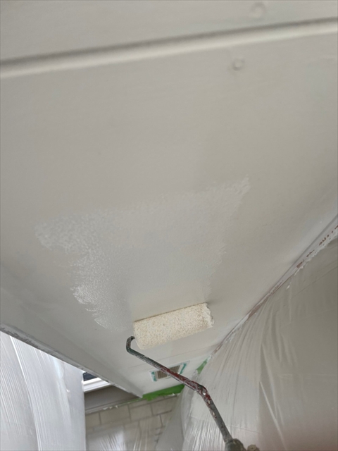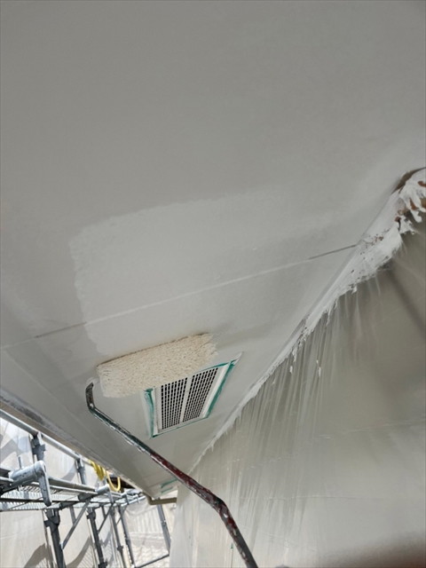 [春日市 M様邸] 軒天塗装 屋根の中塗り