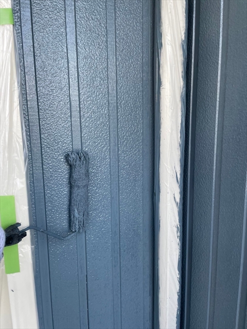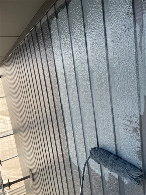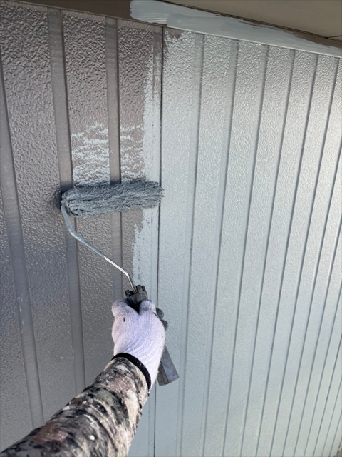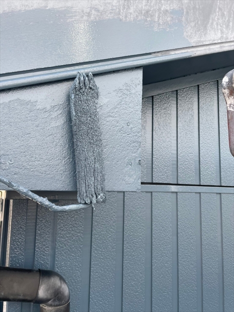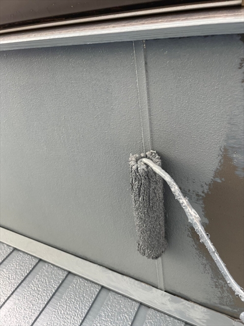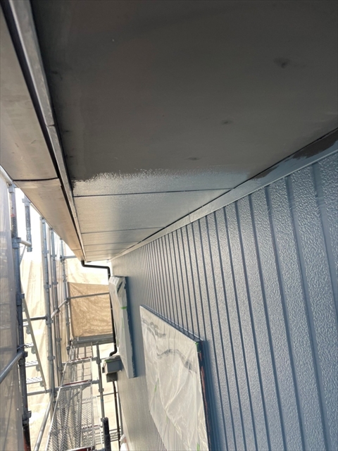 本日は軒天塗装、上壁の中塗りを行いました。
