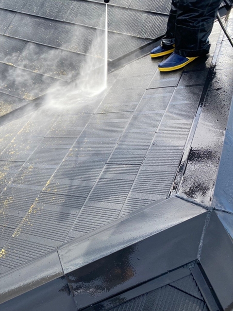 明日は屋根の下塗り、養生、壁の下塗り、屋根の中塗りを行う予定です。