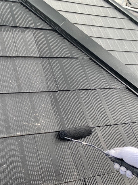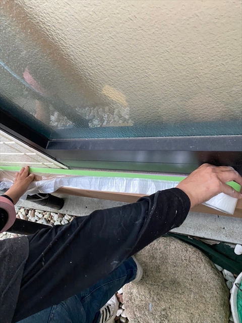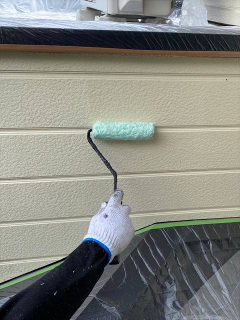 [糟屋郡 T様邸] 養生 壁の下塗り 屋根の下塗り・中塗り 壁の中塗り