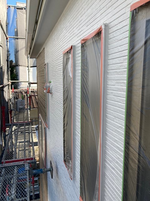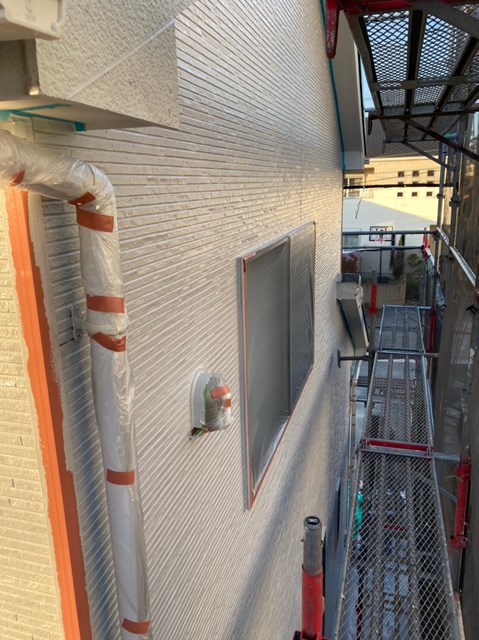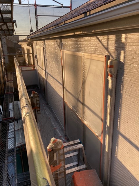 本日で軒天井と外壁の中塗り