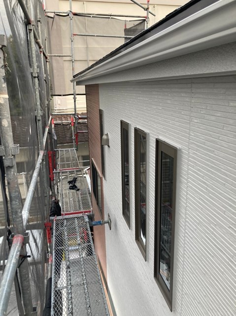 本日で外壁は手直し、タッチアップなどは残っていますが上塗りまで完了です。