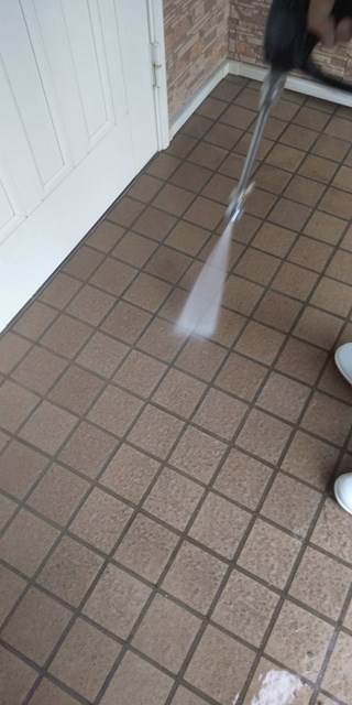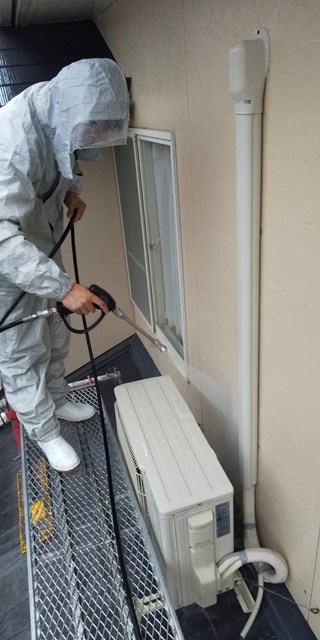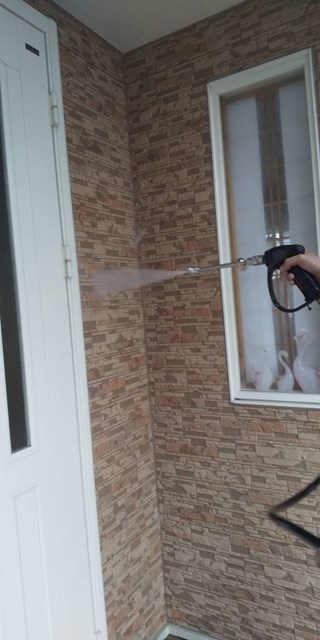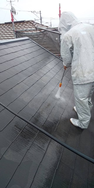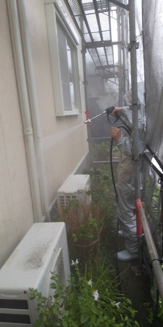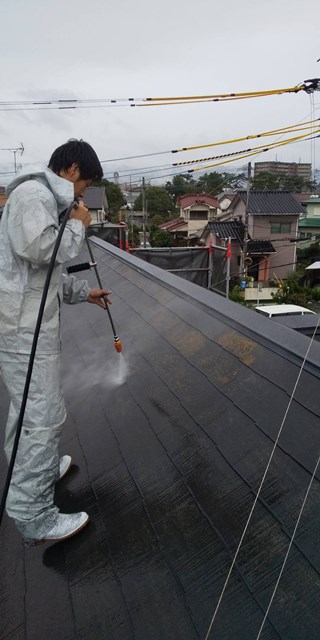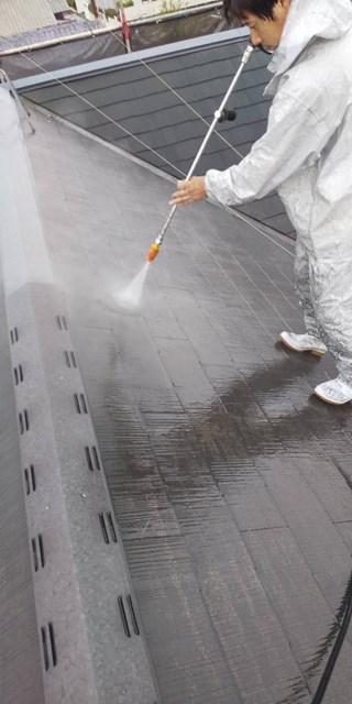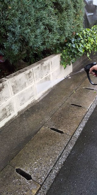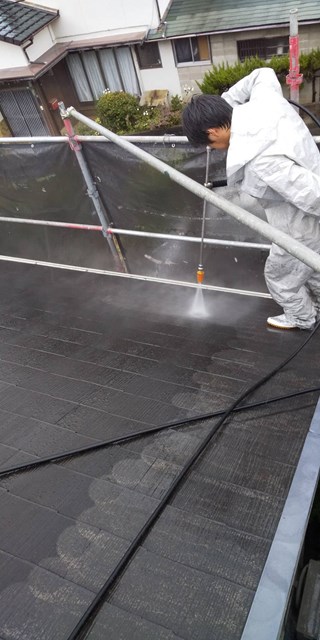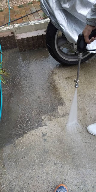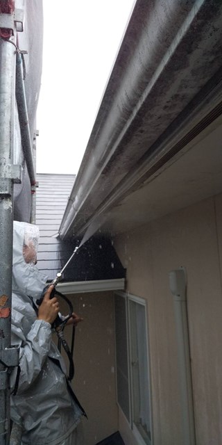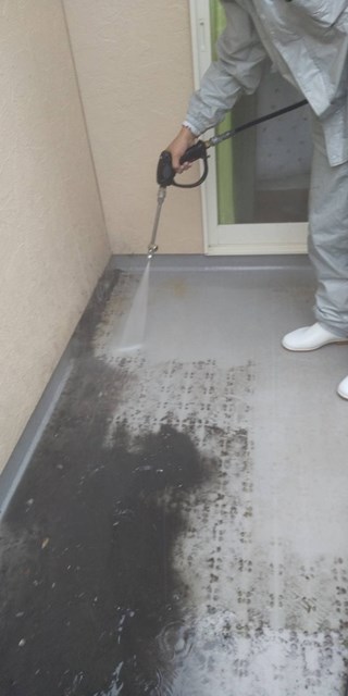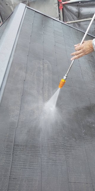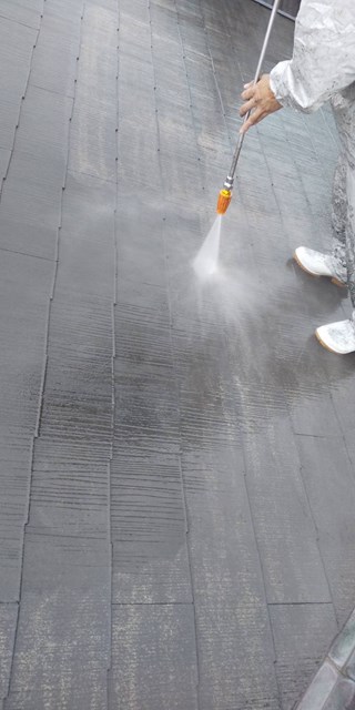 屋根、外壁、土間ともに高圧洗浄で落とせる範囲でしっかりと洗浄しました。