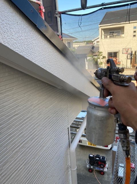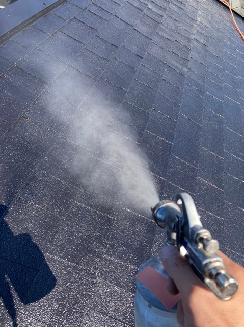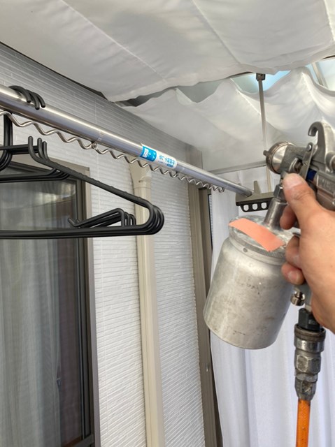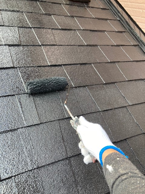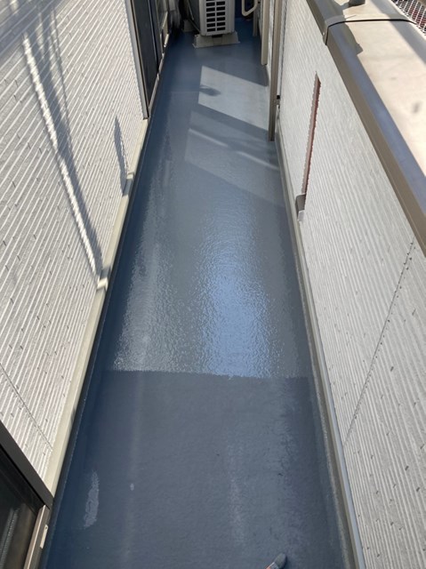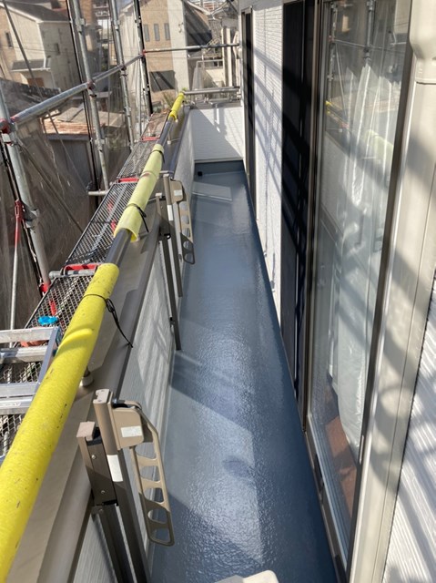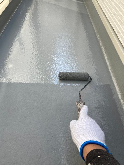 久留米市 M様邸 バルコニー防水塗装 下屋根 上塗り 可視光線型光触媒コーティング