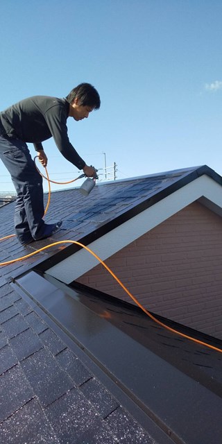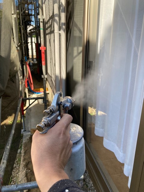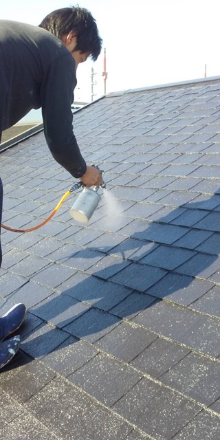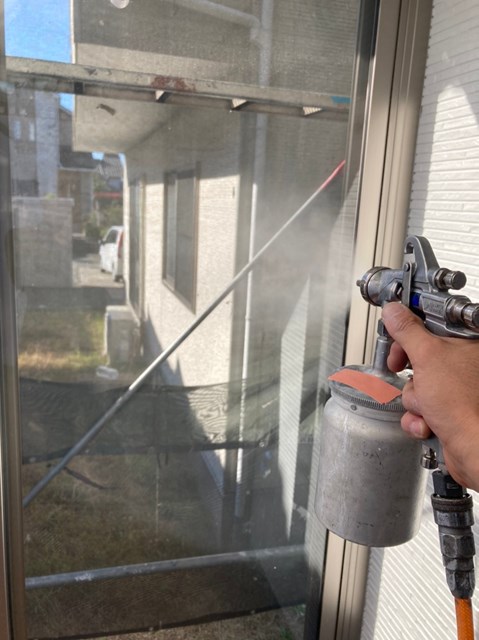 しっかりと乾燥させた後、午後から可視光線型光触媒コーティング(セルフガード)を行いました。