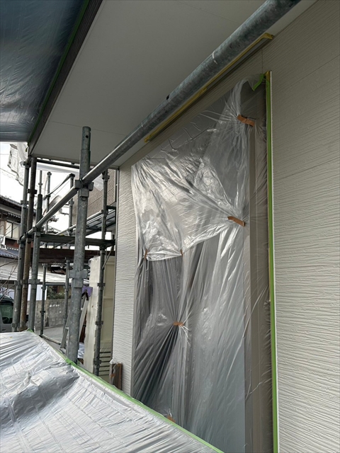 [福津市 O様邸] 養生 壁の下塗り
