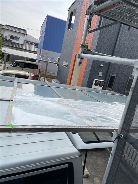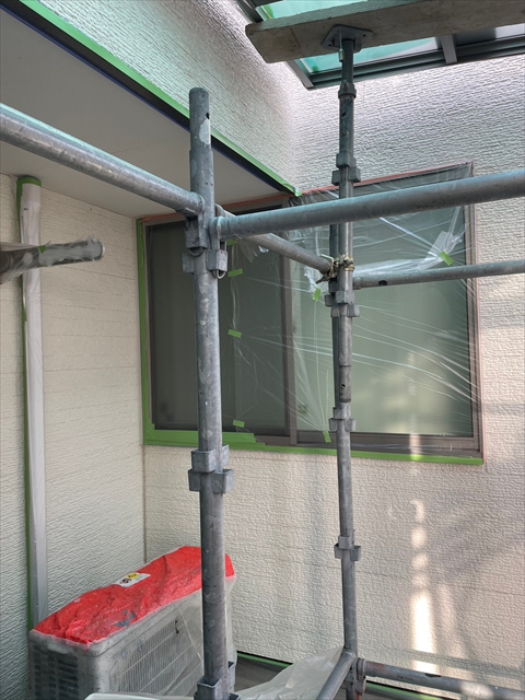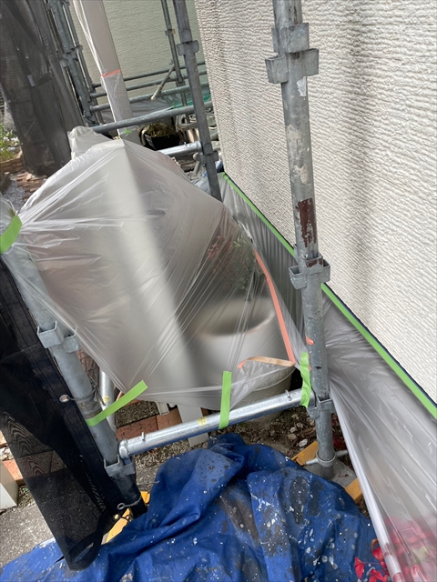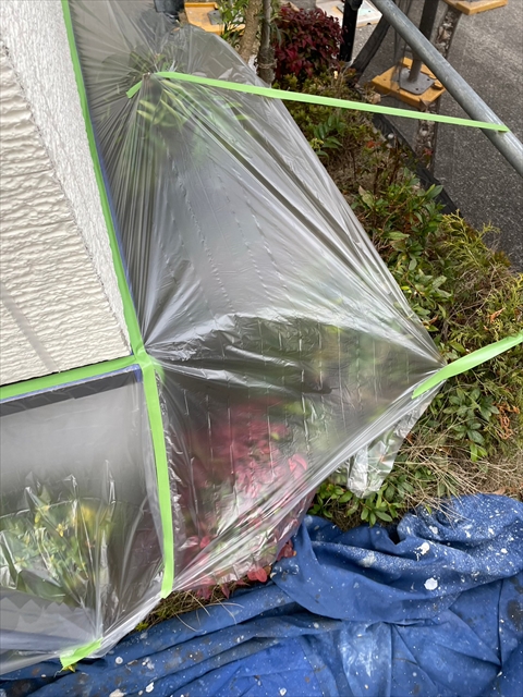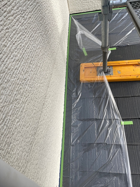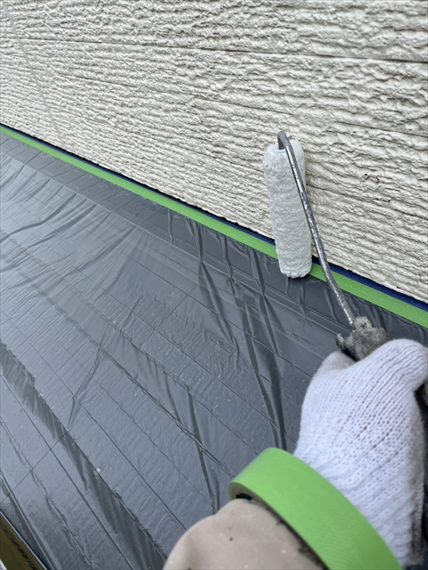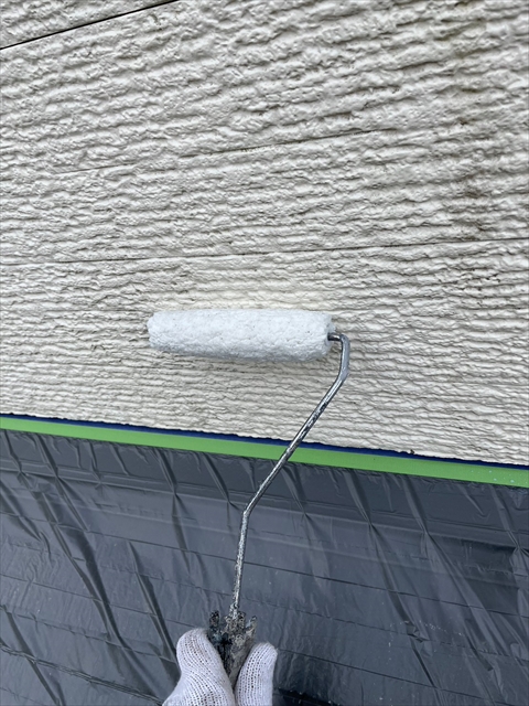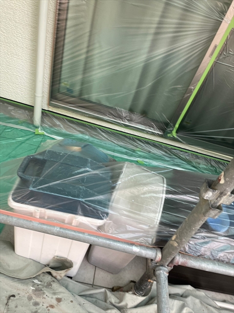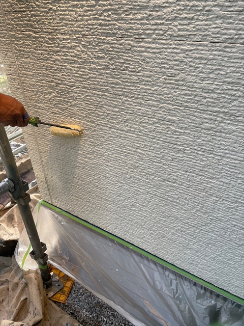 [久留米市 H様邸] 養生 壁の下塗り