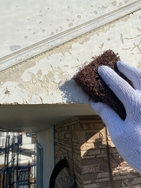 それから破風板の劣化が激しい箇所がありましたのでケレンを行いました。