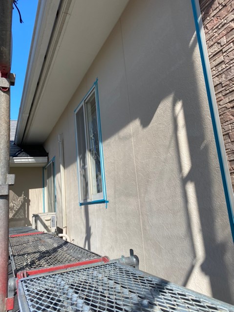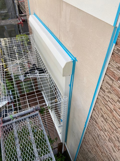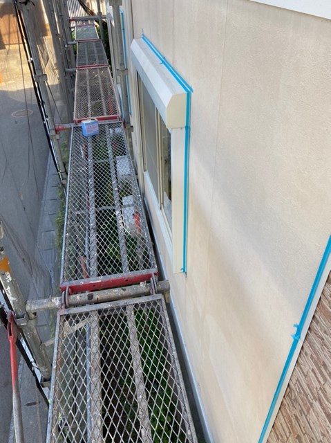 本日はコーキング撤去、打ち替えに伴うマスキングテープ養生を行いました。