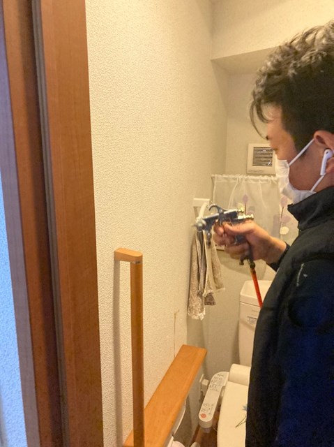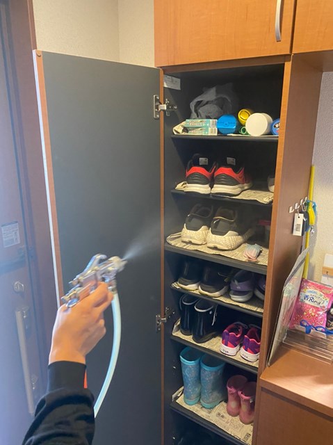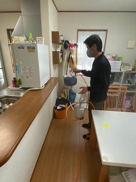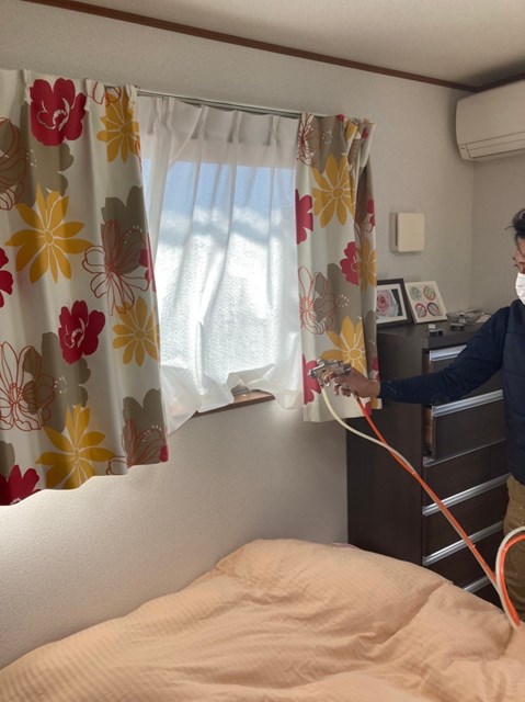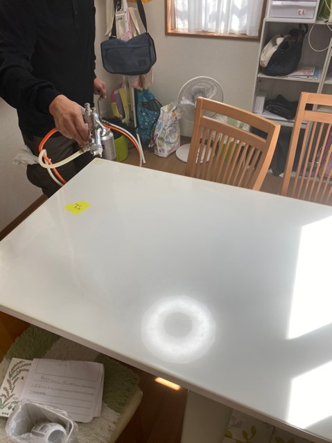 本日は室内用光触媒コーティング、エコクリーンの施工と完工検査を行いました。