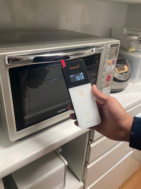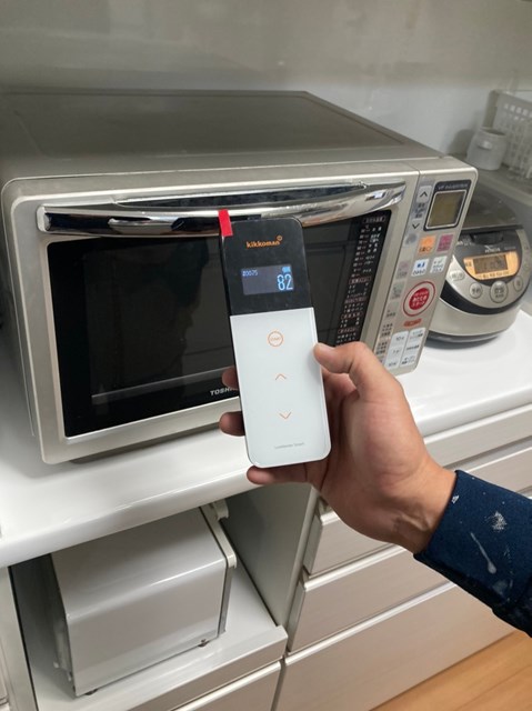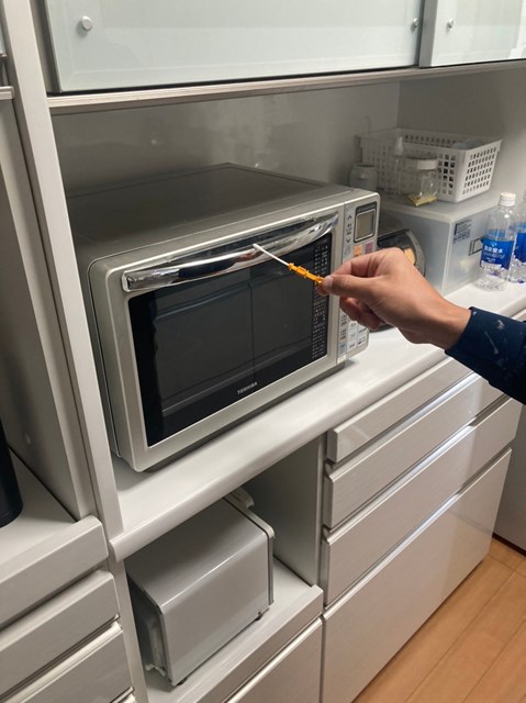 電子レンジの取手は施工前は1614でしたが、施工後は84まで除菌できました。
