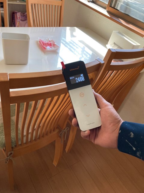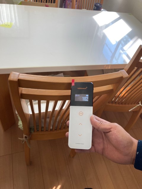 リビングの椅子は施工前2468、こちらは102まで除菌できました。