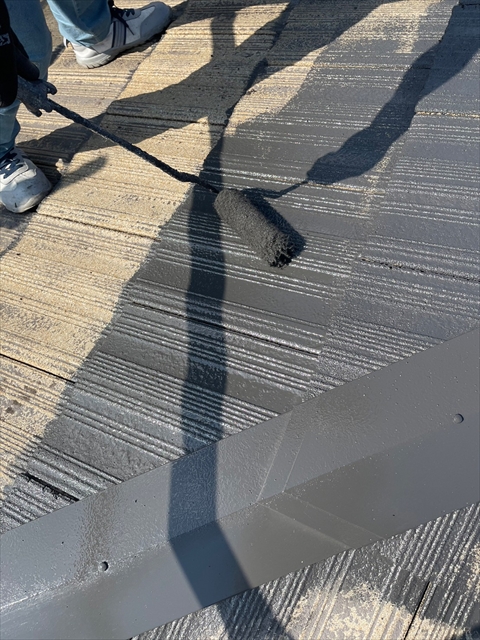 本日は壁の中塗り・上塗り、屋根の中塗りを行いました。